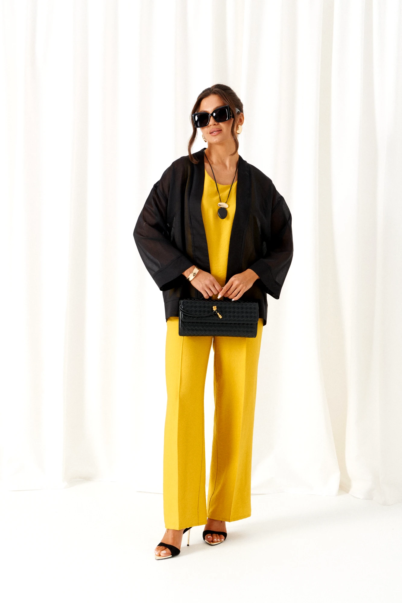 Брючный костюм Beautiful&Free 6449 тройка желтый, черный