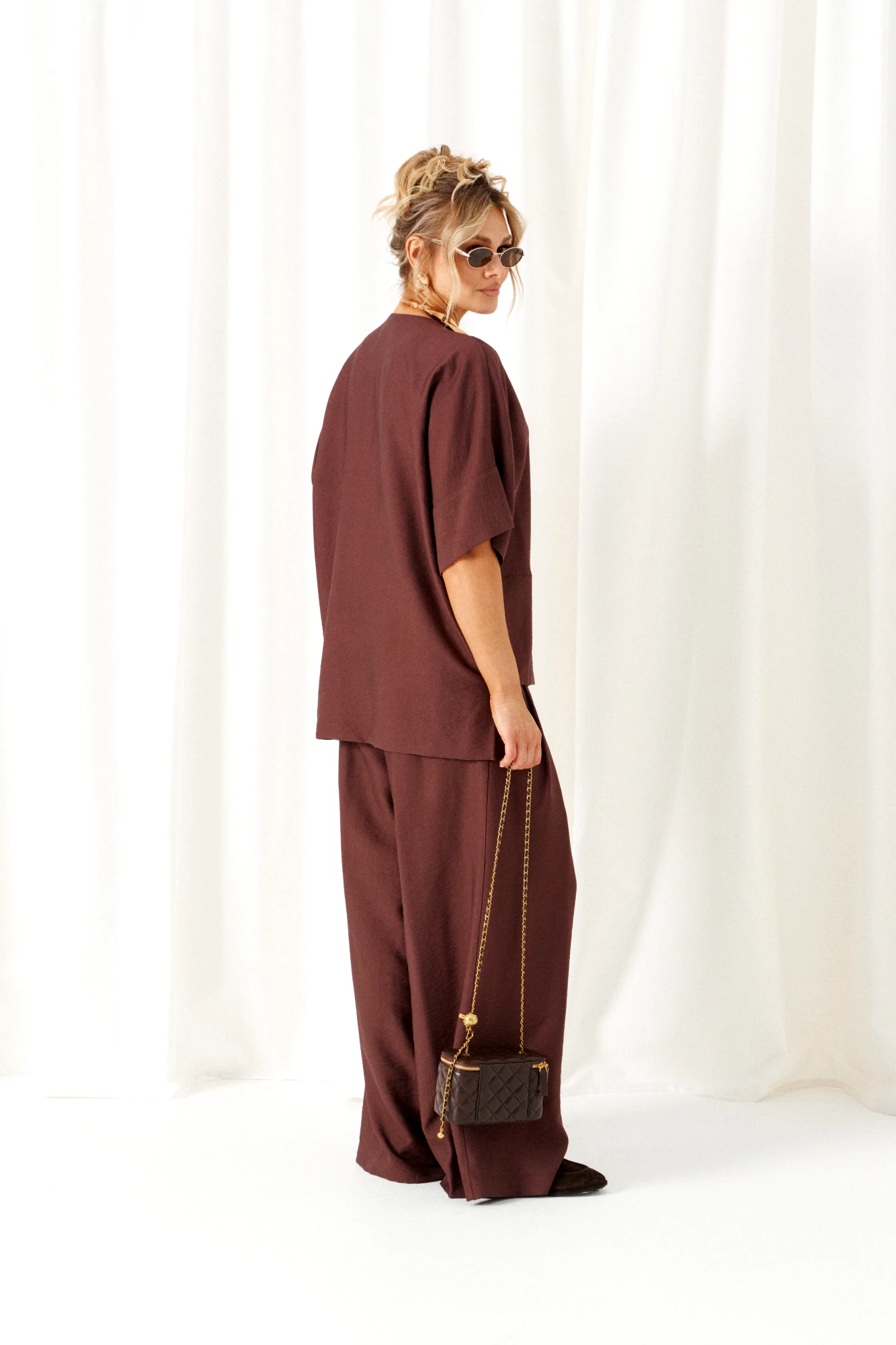 Брюки длинные, прямые свободные. Посадка стандартная, на поясе.