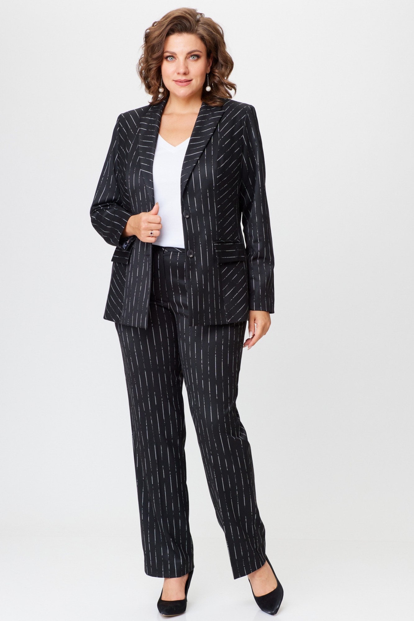 Брючный костюм БелЭльСтиль 412+596 черный, полоска