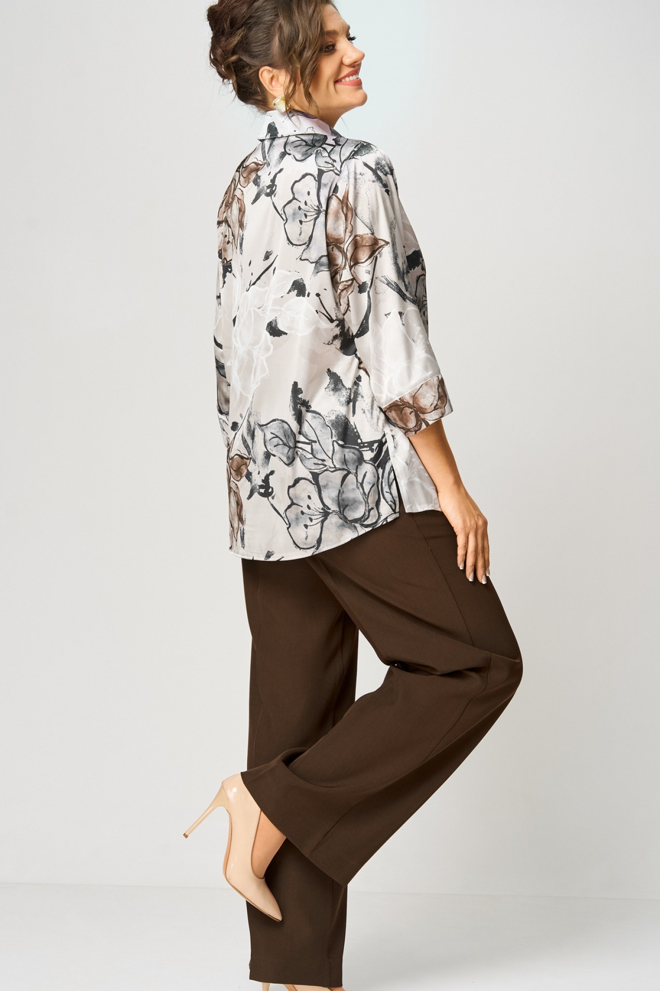 Брючный костюм БелЭльСтиль 877+601 бежево-коричневый