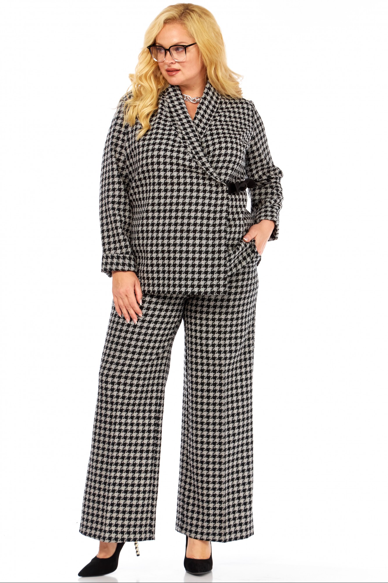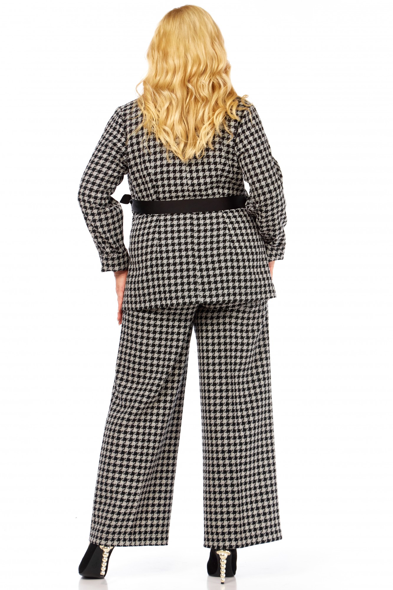 Длина жакета 72 см, рукав с учетом манжеты 62 см, манжета 12 см. Длина брюк по боковому шву с учетом пояса 106 см.