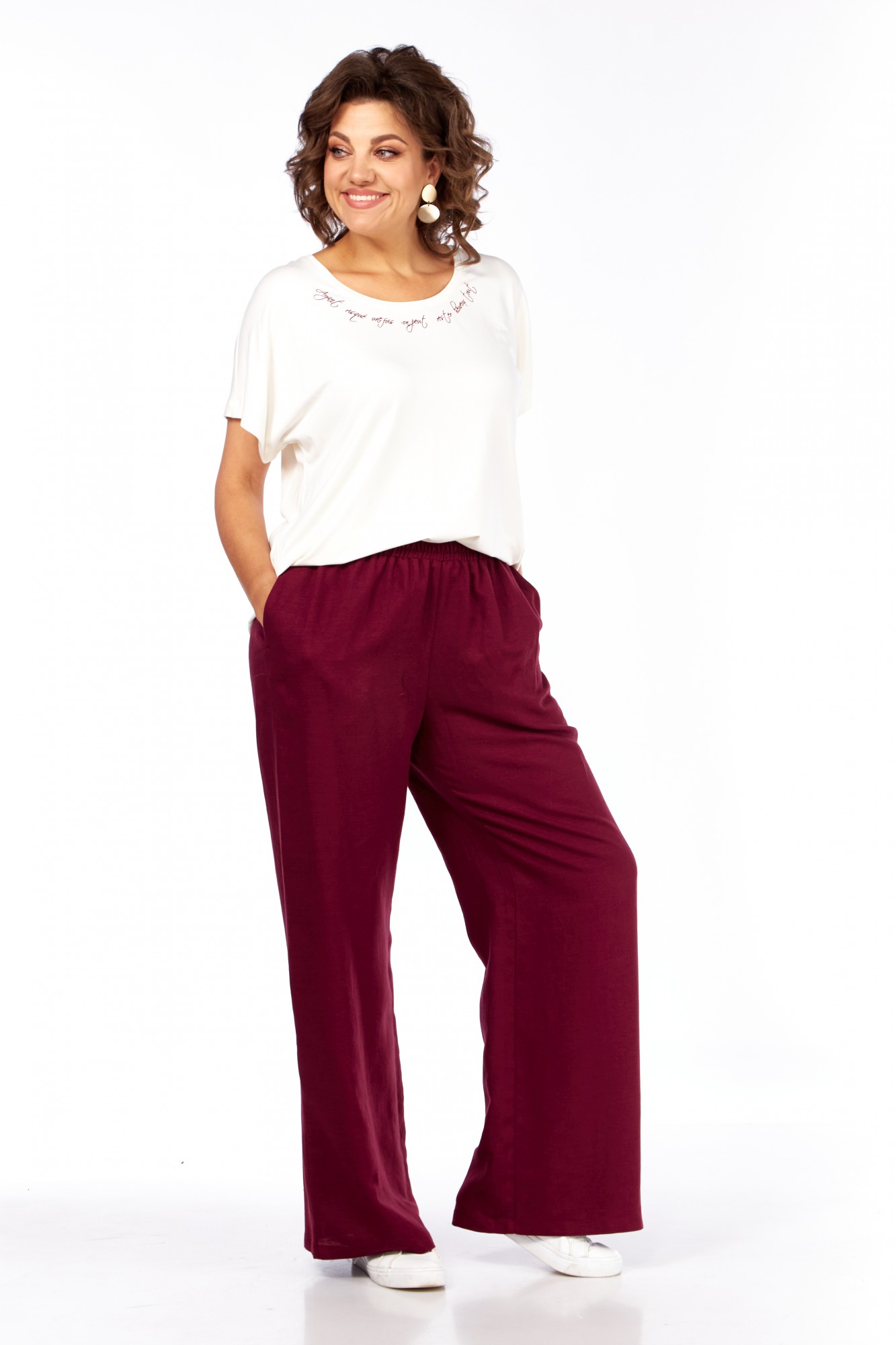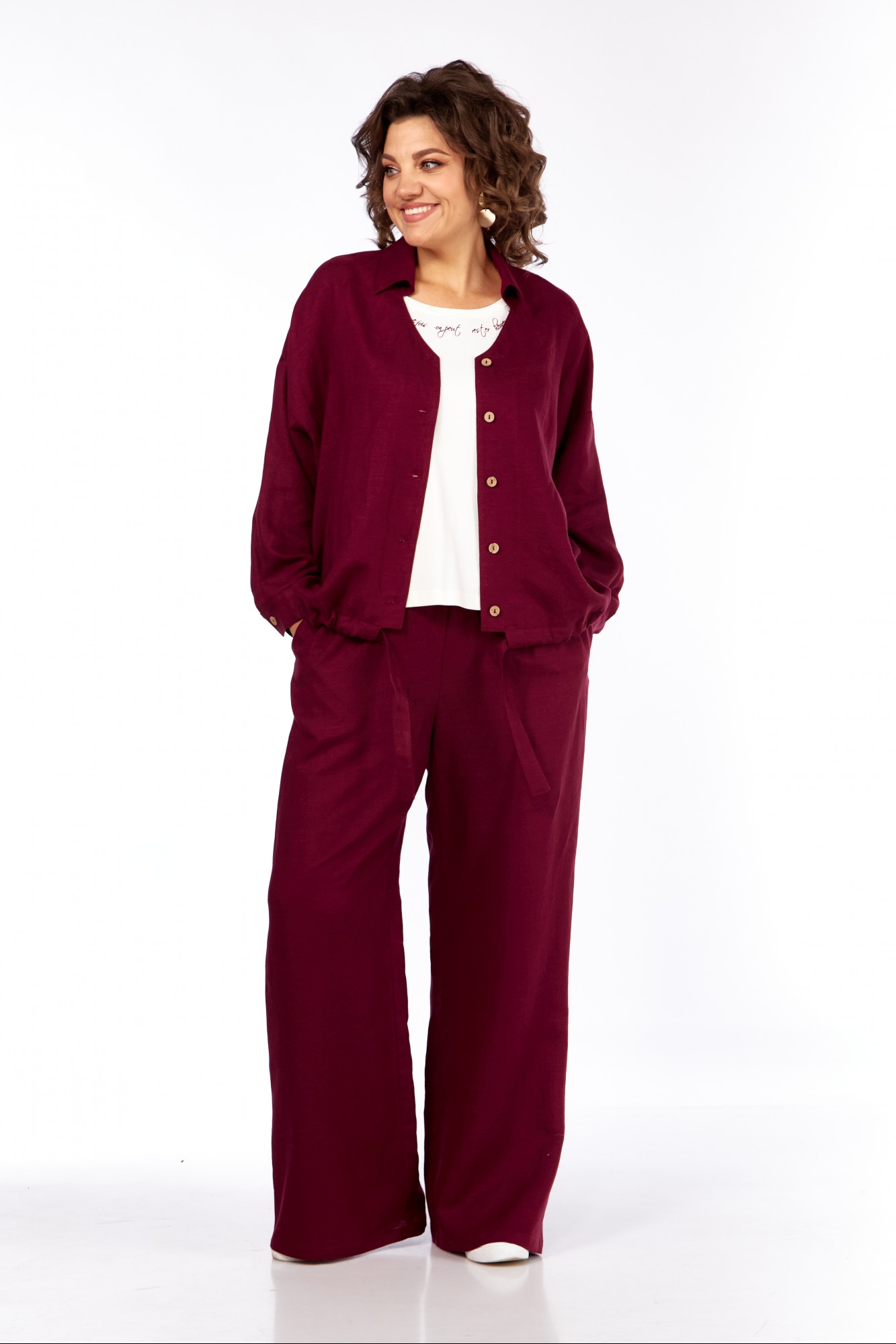 Брюки и кардиган: лен 53%, вискоза 47%. Майка: вискоза 60%, ПЭ 40%