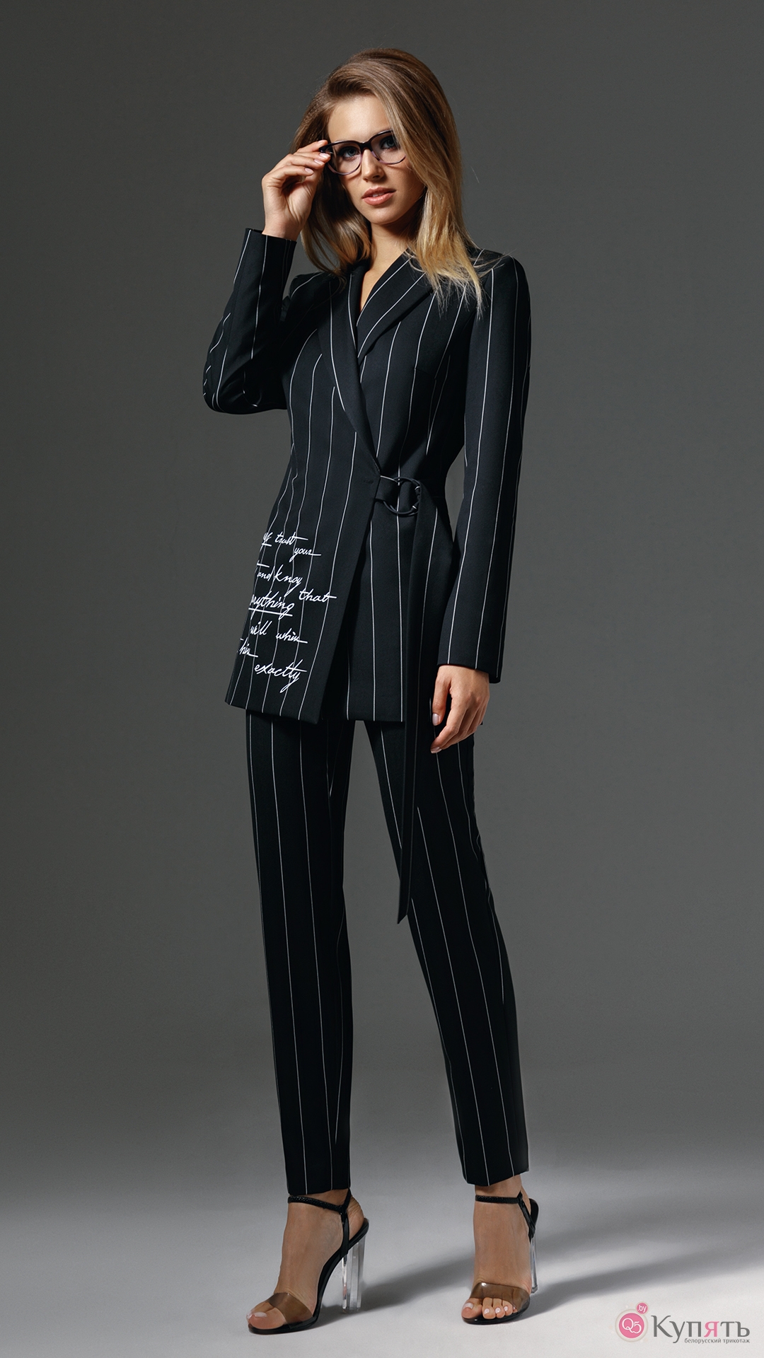 Брючный костюм DILIA 0261 чёрный/ белый с ID товара 195888
