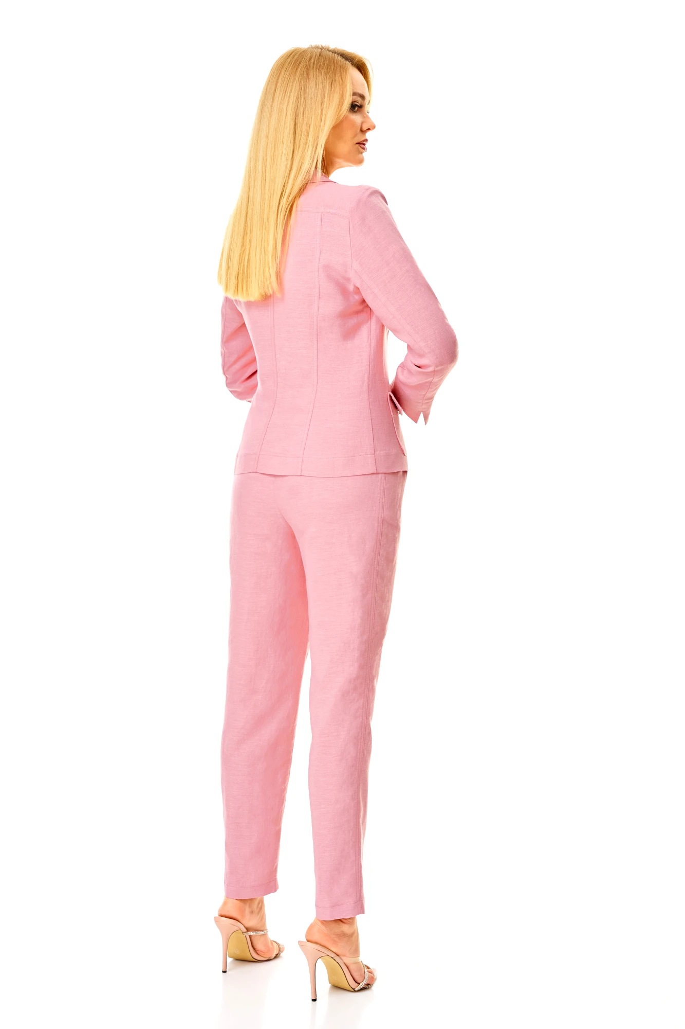 Жакет – лен 53%, вискоза 47%. Брюки – лен 53%, вискоза 47%