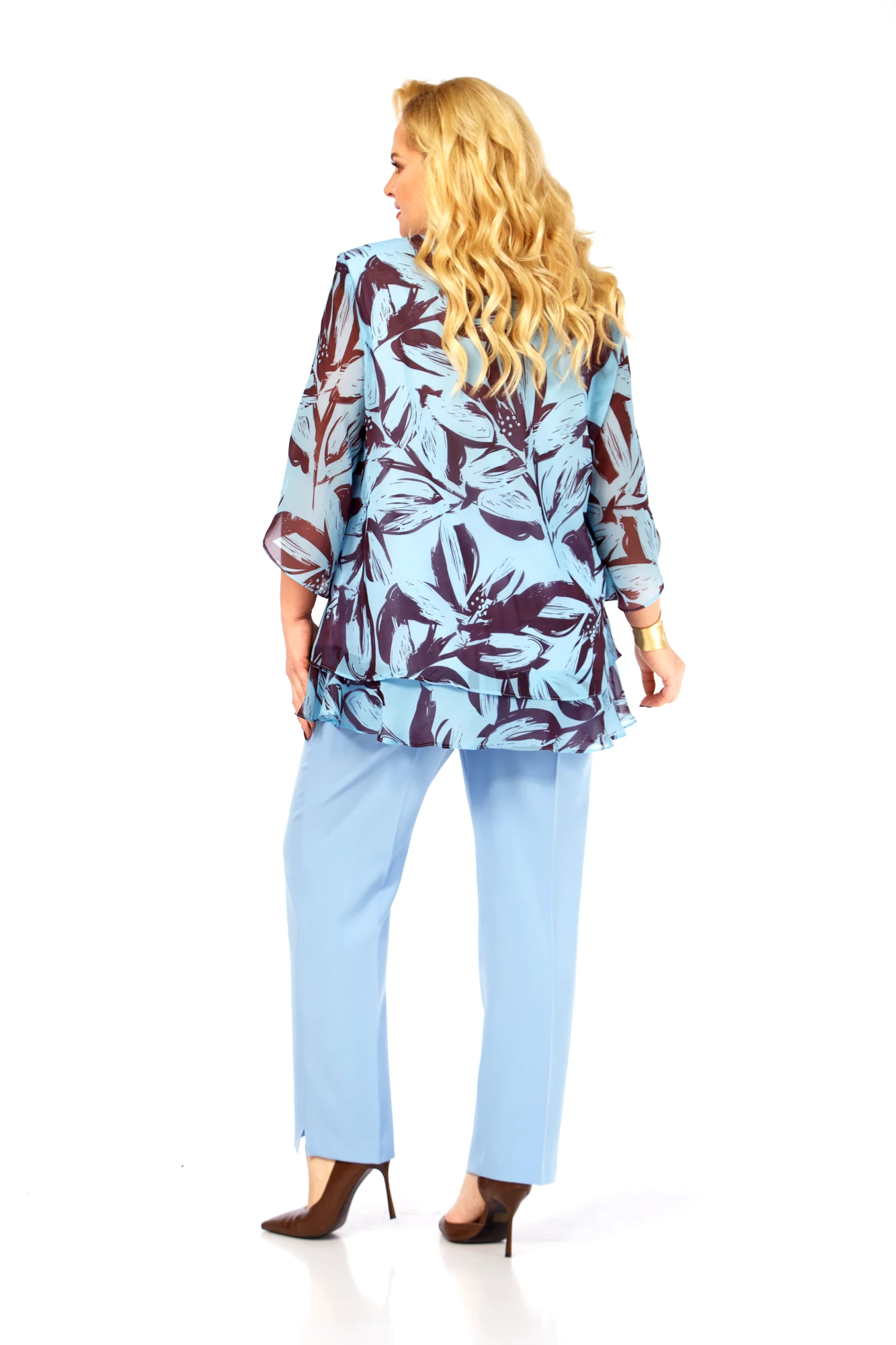 Брючный костюм Элль-Стиль 2213 /12 голубой, кофе