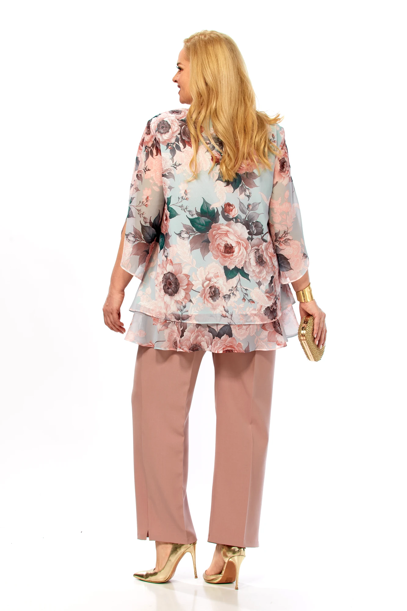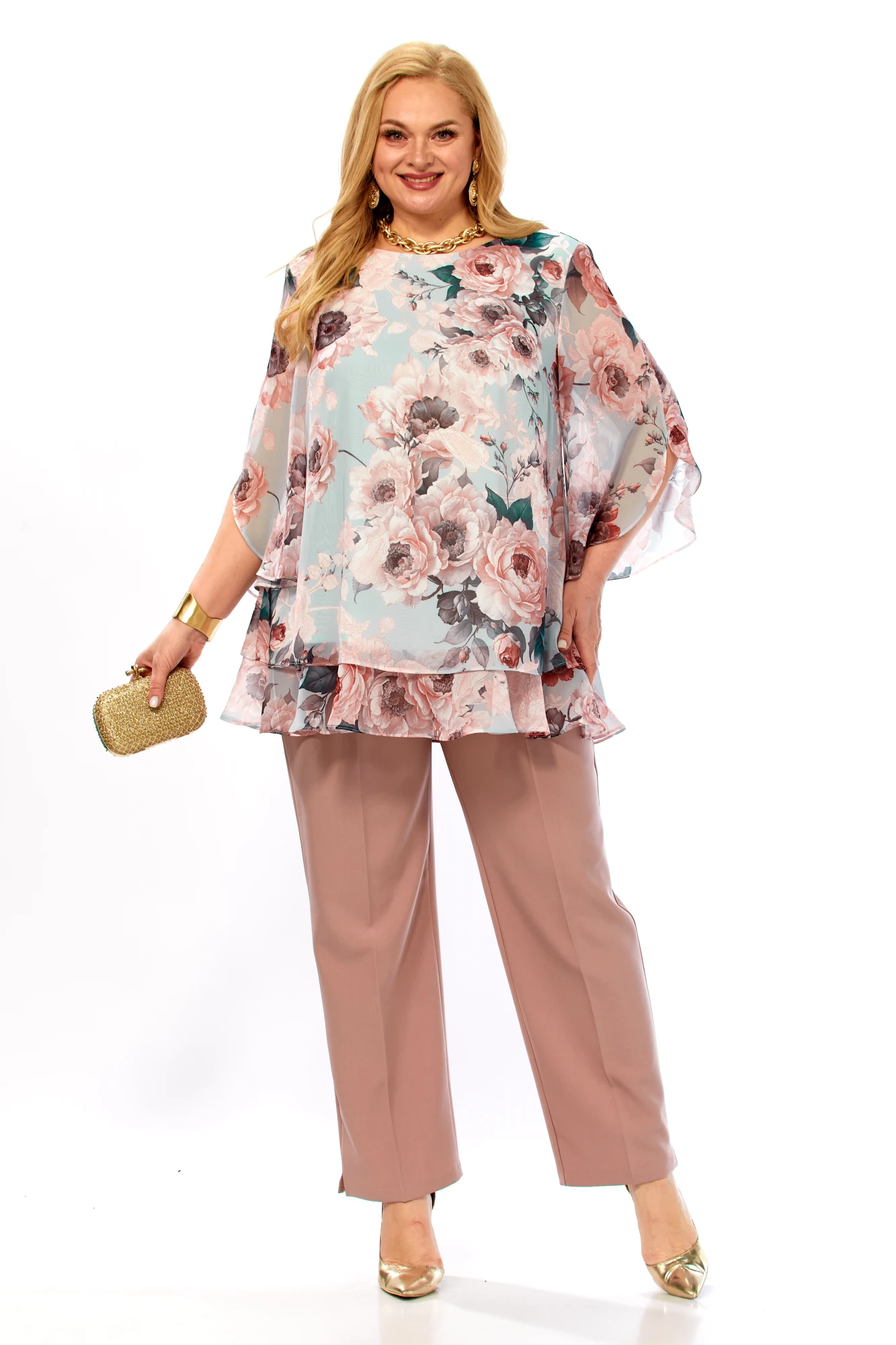 Блузка – полиэстер 100% (шифон). Брюки – полиэстер 50%, вискоза 50%
