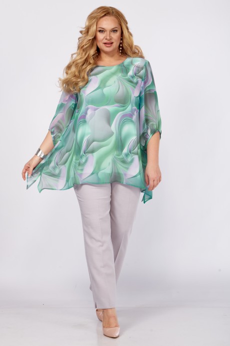 Брючный костюм Элль-Стиль 2263 /10 мята принт, брюки светло-серый