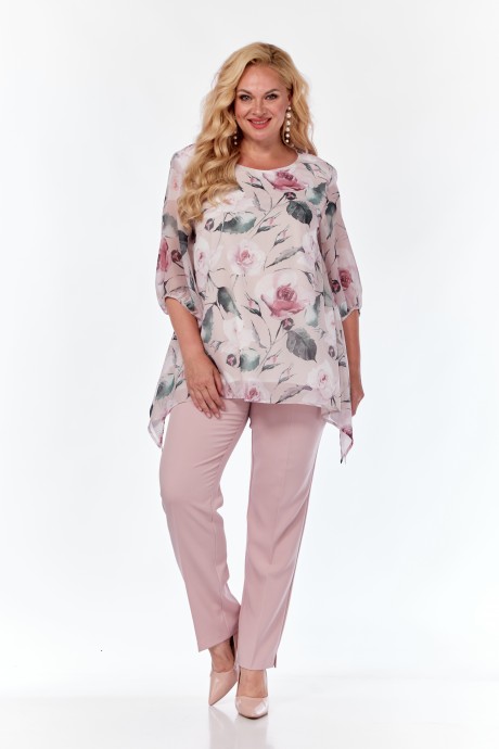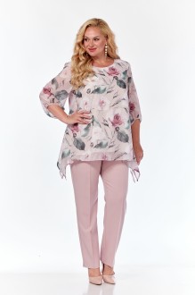 Брючный костюм Элль-Стиль 2263 /3 пудра, принт цветы с ID товара 419971