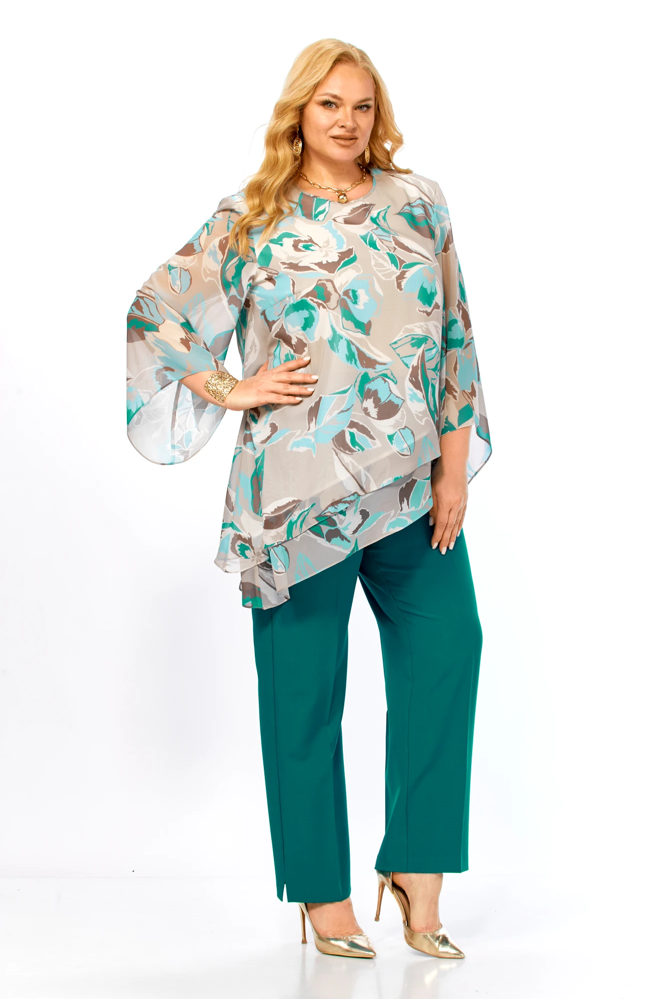 Блуза – полиэстер 100%. Брюки полиэстер 50%, вискоза 50%