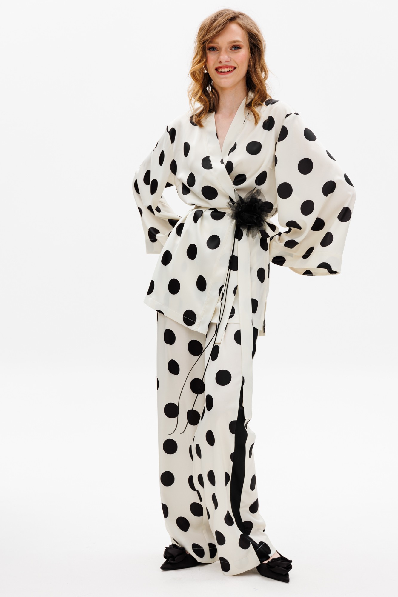 Брючный костюм EOLA 2635 молочный с принтом с ID товара 392709