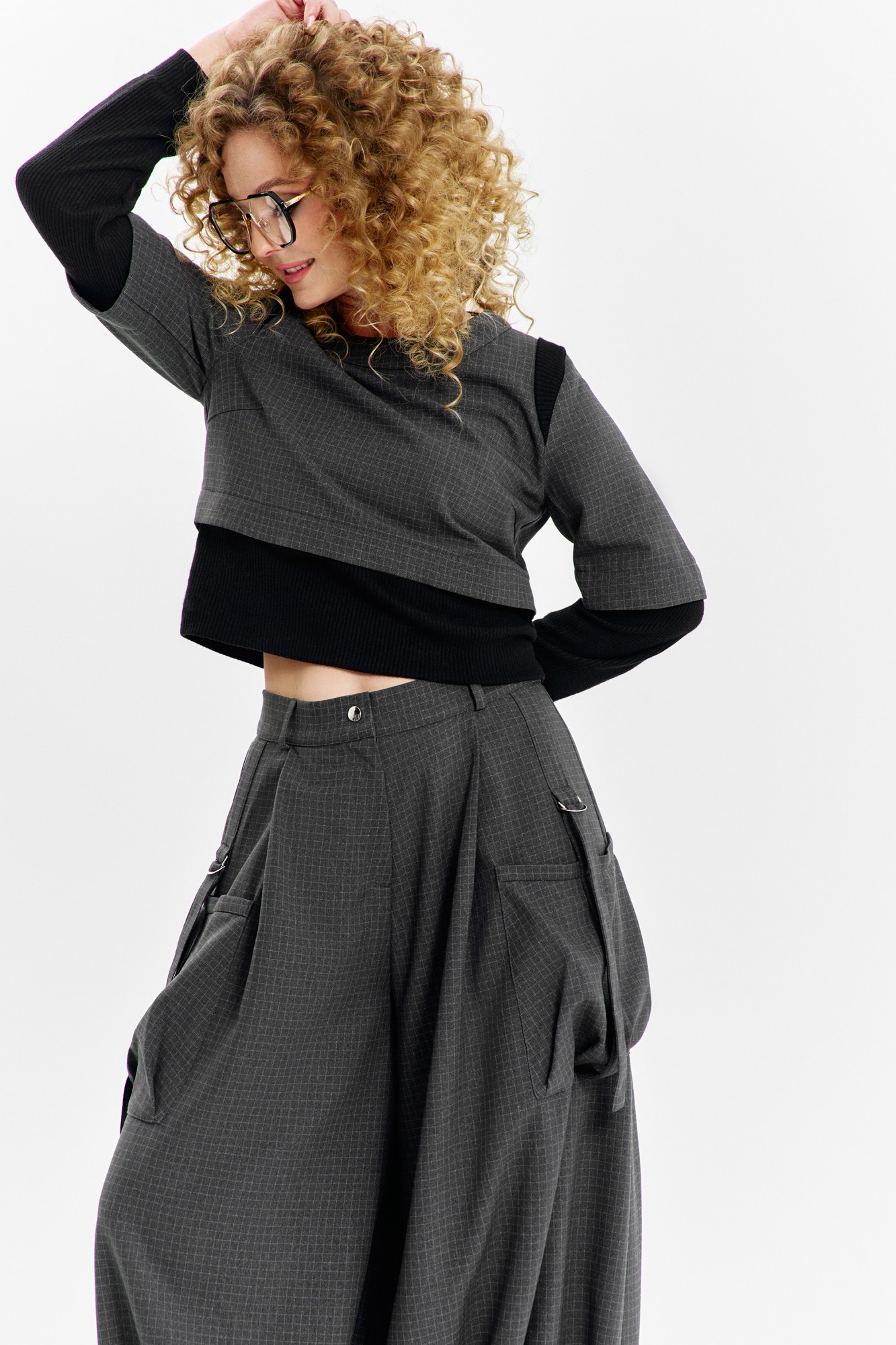 Костюм/комплект Euromoda 632 двойка серый (клетка), черный