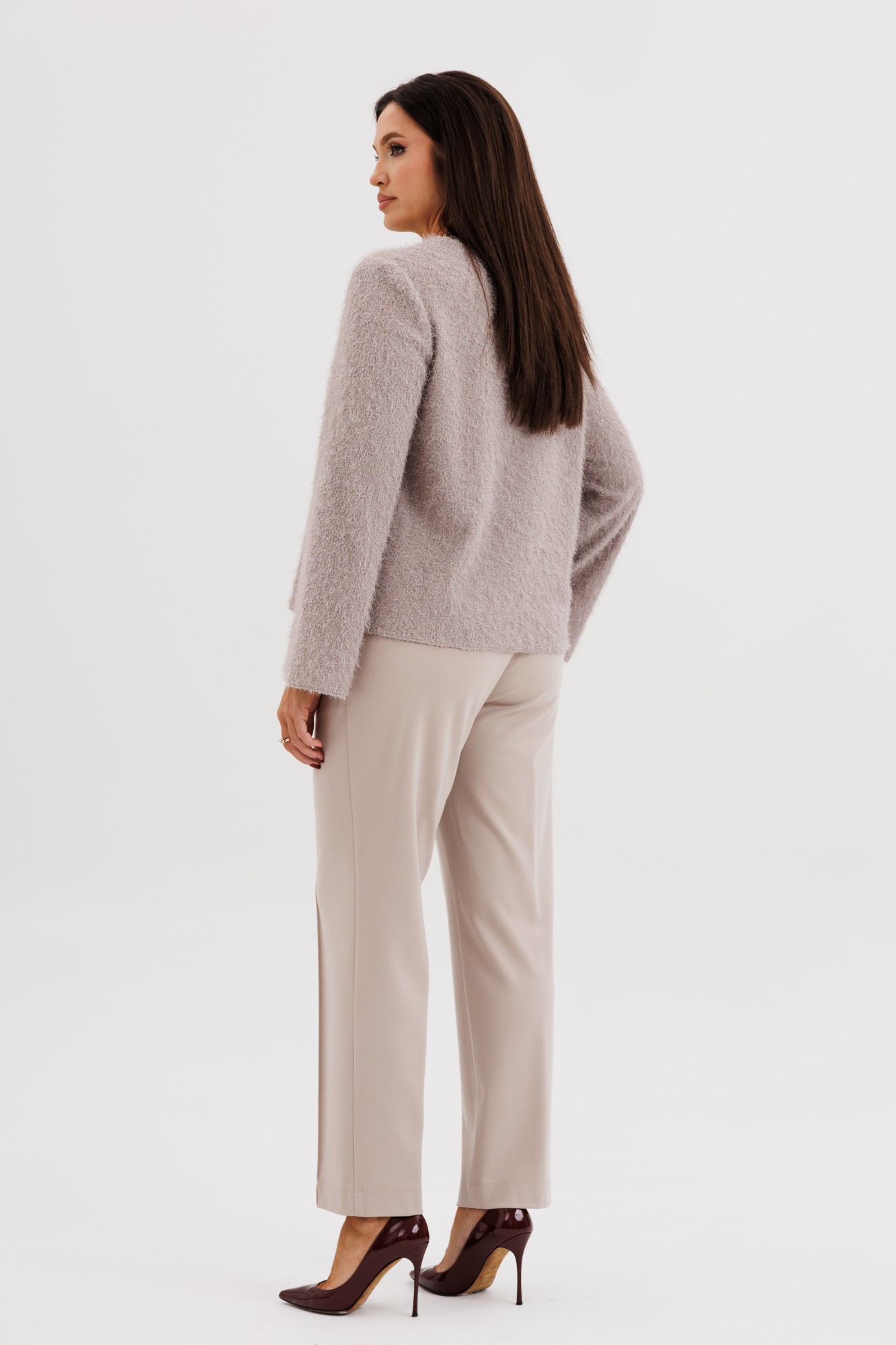 Элегантный брючный комплект — идеальное решение для стильных и уверенных в себе женщин. Комплект состоит из мягкой фактурной блузы свободного кроя и прямых брюк со стрелками. Такое сочетание подчеркивает женственность и утончённый вкус, оставаясь при этом удобным и практичным. Блуза выполнена из нежного трикотажа с лёгким ворсом — материал красиво драпируется и придаёт образу уют. Брюки классического кроя с высокой посадкой и застроченными стрелками визуально вытягивают силуэт и создают безупречную посадку. Комплект отлично подойдёт для офиса, деловых встреч, прогулок или вечернего выхода. Лаконичный дизайн позволяет легко сочетать вещи с обувью на каблуке, ботильонами или кедами. Комплект: блуза + брюки. Фактурная, мягкая блуза с лёгким блеском. Брюки со стрелками и комфортной посадкой. Универсальный стиль — от делового до casual chic Нежная цветовая гамма, подчёркивающая утончённость.