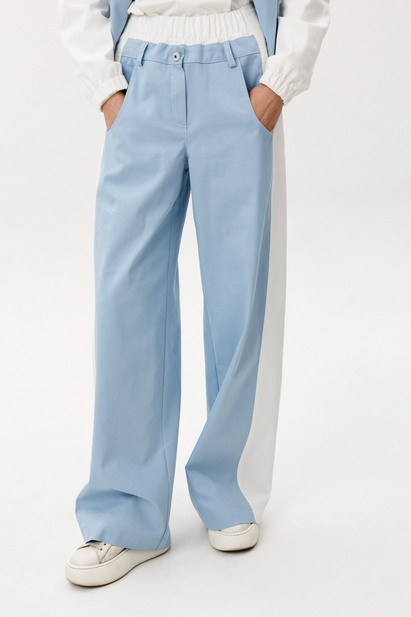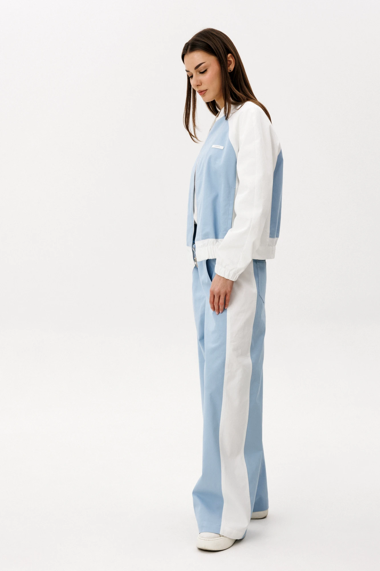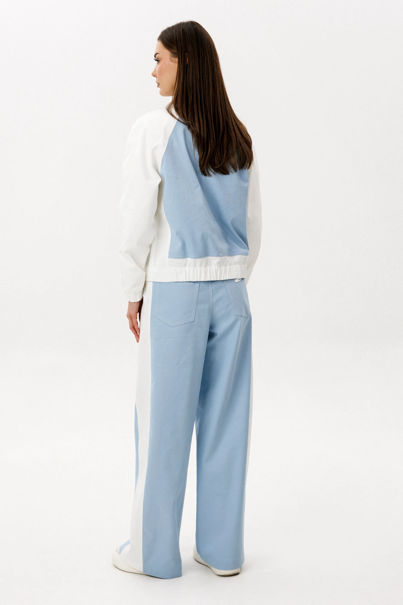 Эффектный брючный комплект в нежном оттенке «Тиффани» — современное прочтение casual-стиля с акцентом на комфорт и актуальный силуэт. Свободный крой и мягкие линии создают расслабленный, но продуманный образ для динамичного городского ритма. Детали модели: Широкие брюки с высокой посадкой и мягкой линией талии. Объемный силуэт, визуально вытягивающий фигуру. Легкая куртка на молнии с контрастными белыми рукавами. Минималистичная отделка и функциональные карманы. Комплект выполнен из качественного хлопчатобумажного полотна. Натуральная ткань обеспечивает воздухопроницаемость, комфорт и приятные тактильные ощущения. Материал держит форму, при этом остается легким и удобным в носке. Широкие брюки придают образу трендовую выразительность и свободу движений, а свежий голубой оттенок добавляет легкости и визуальной чистоты. Комплект легко комбинируется с базовыми футболками, топами и кедами, создавая стильные повседневные образы. Преимущества: Натуральный хлопковый состав. Актуальный oversize-силуэт. Комфортная посадка. Универсальность для повседневного гардероба. Брючный комплект "Tiffany" с широкими брюками — это гармония стиля, удобства и актуальных трендов. Идеальный выбор для тех, кто ценит свободу и элегантность в деталях.