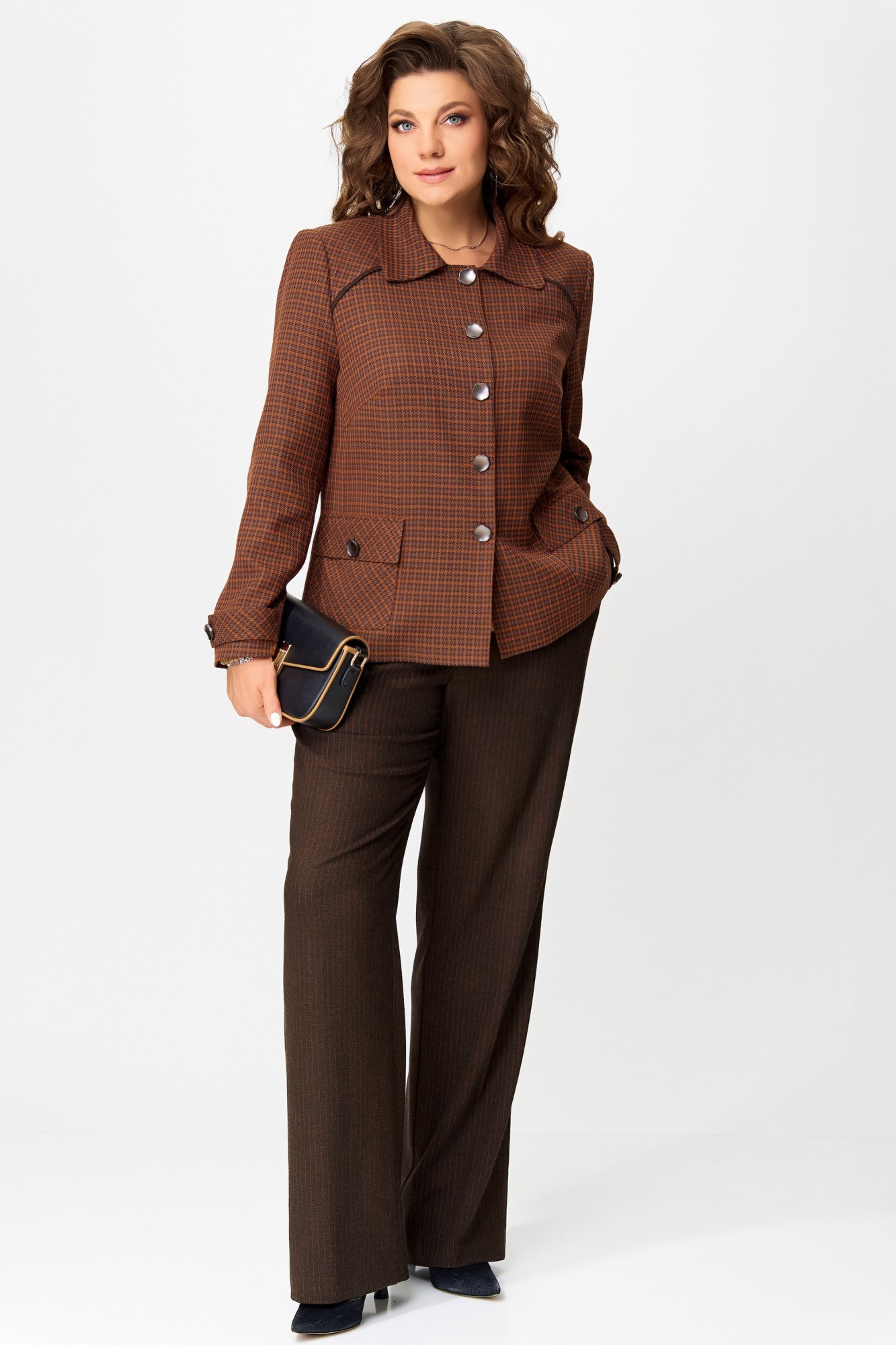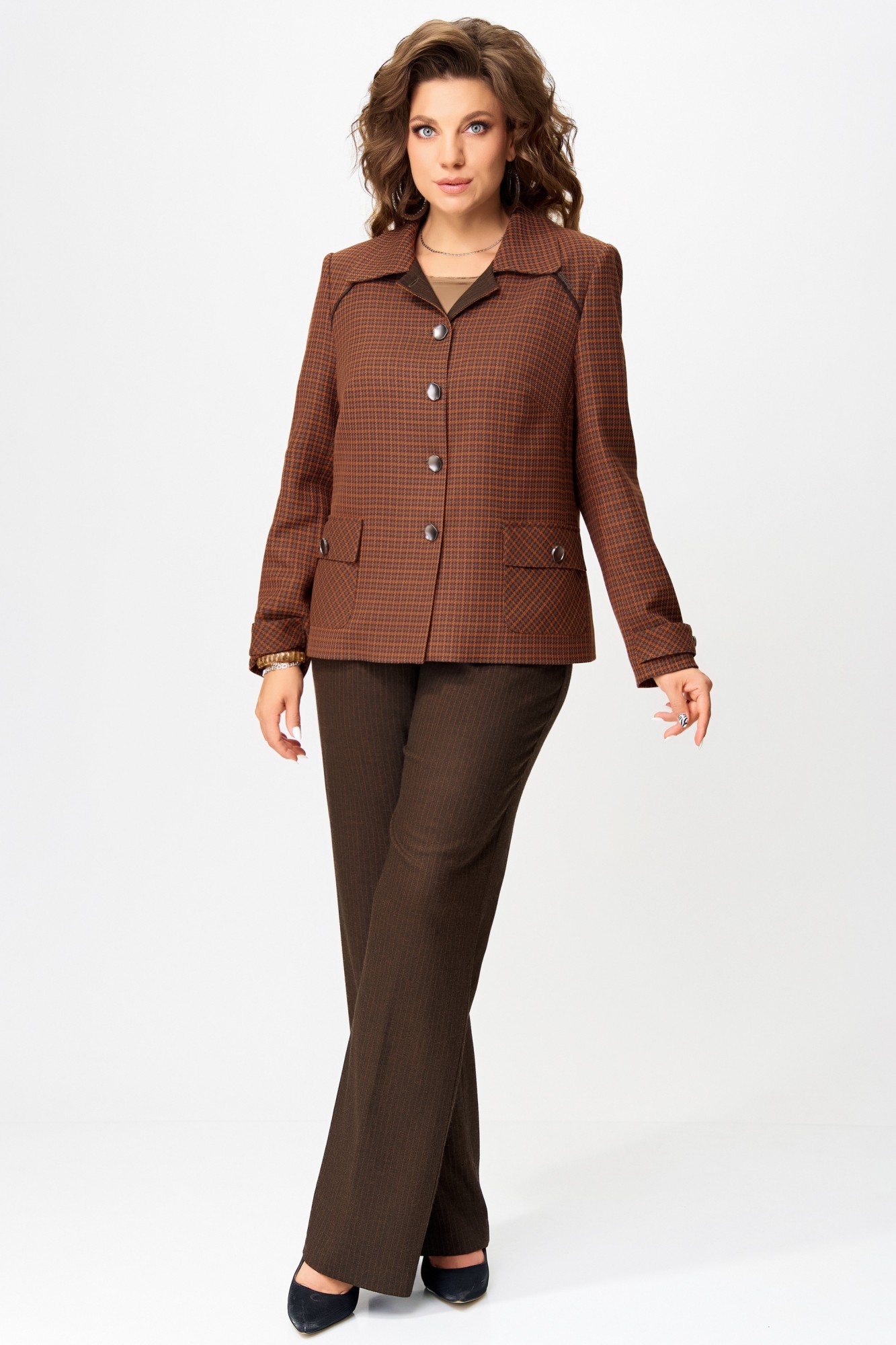 «Венциана» — это не просто двойка, это трансформер настроения. Жакет и брюки можно носить вместе — для делового образа, или по отдельности — вплетая их в повседневный гардероб. Это комплект, который говорит: «Я знаю, чего хочу», и делает это с утончённой уверенностью.