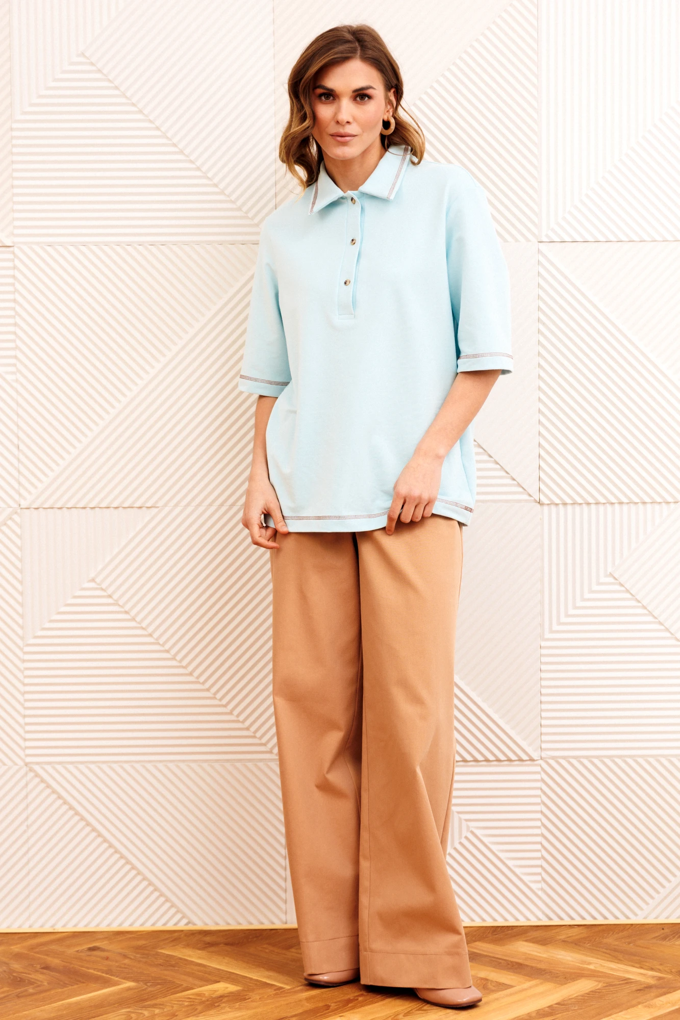 Брючный костюм GIZART 5383 голубой, мокко мусс