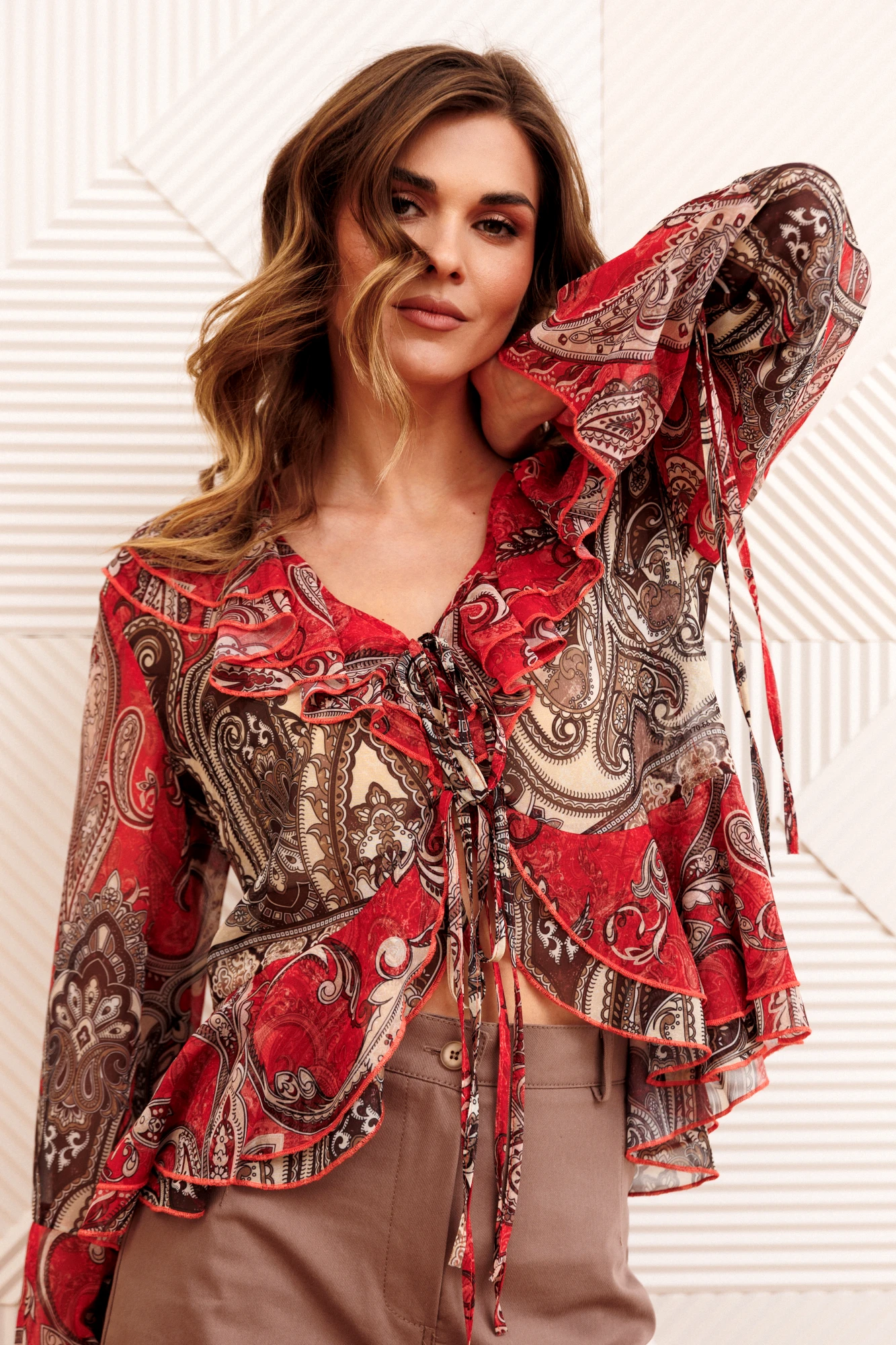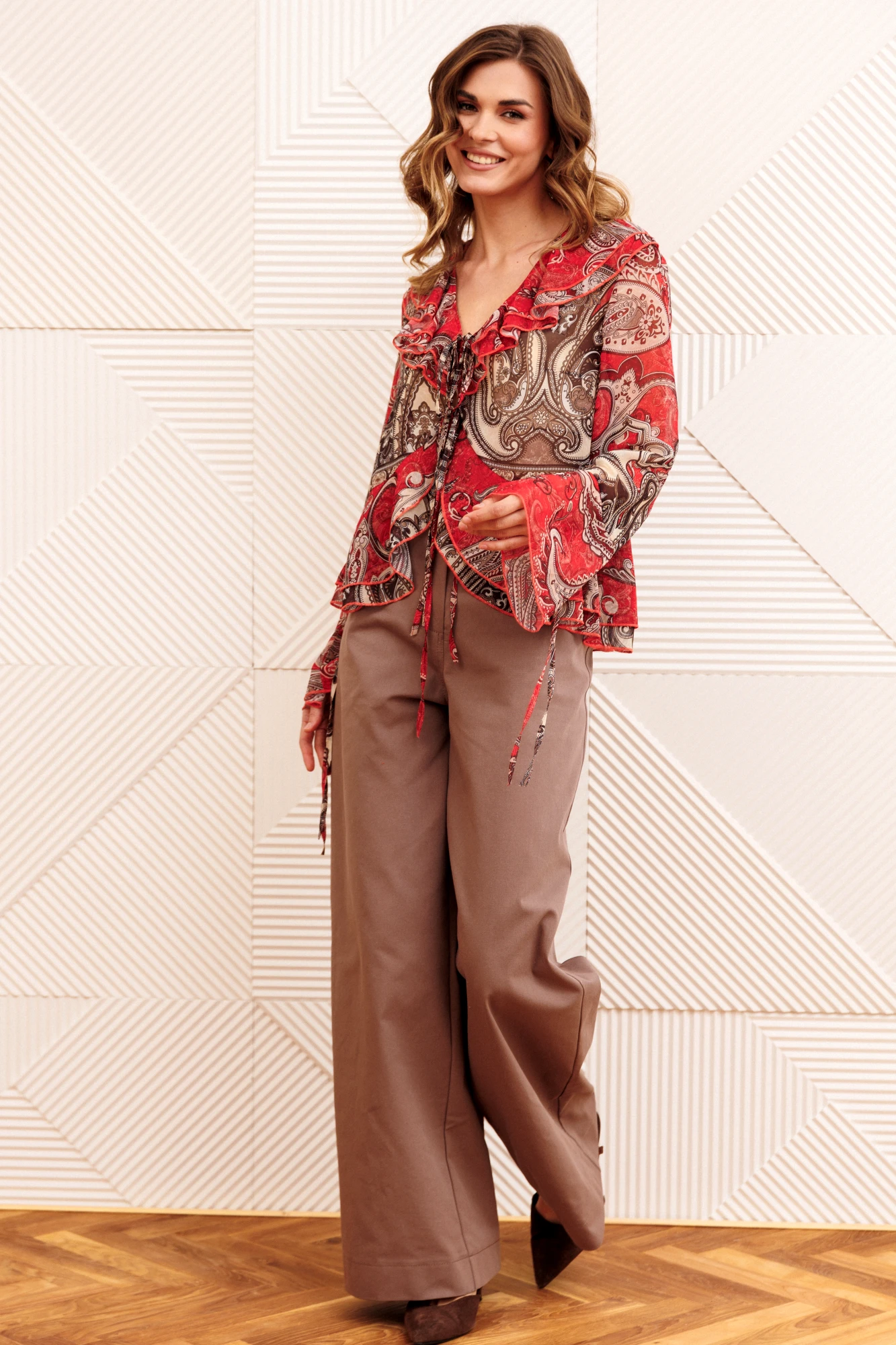 Брючный костюм GIZART 5403 красный, капучино