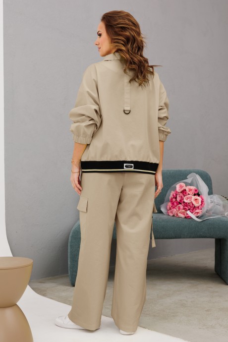 Жакет свободного силуэта, воротник рубашечного типа, рукав спущенный длинный на резинке по низу. По переду кокетка и накладные карманы с клапаном. Застежка по переду на петли и пуговицы.