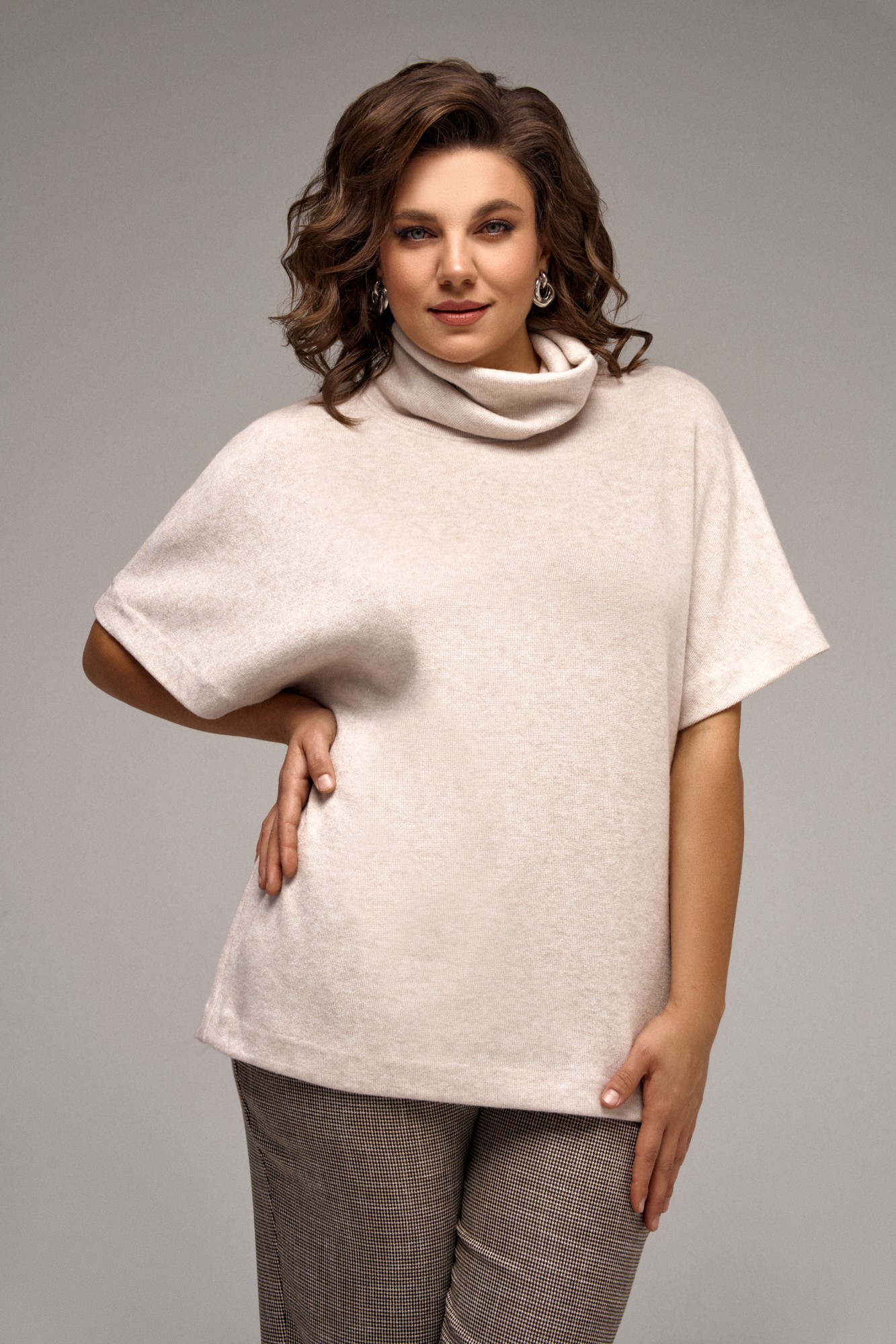 Джемпер из мягкого трикотажного полотна с добавлением ангоры свободного покроя, вырез горловины оформлен воротником- стойкой, рукава спущены.