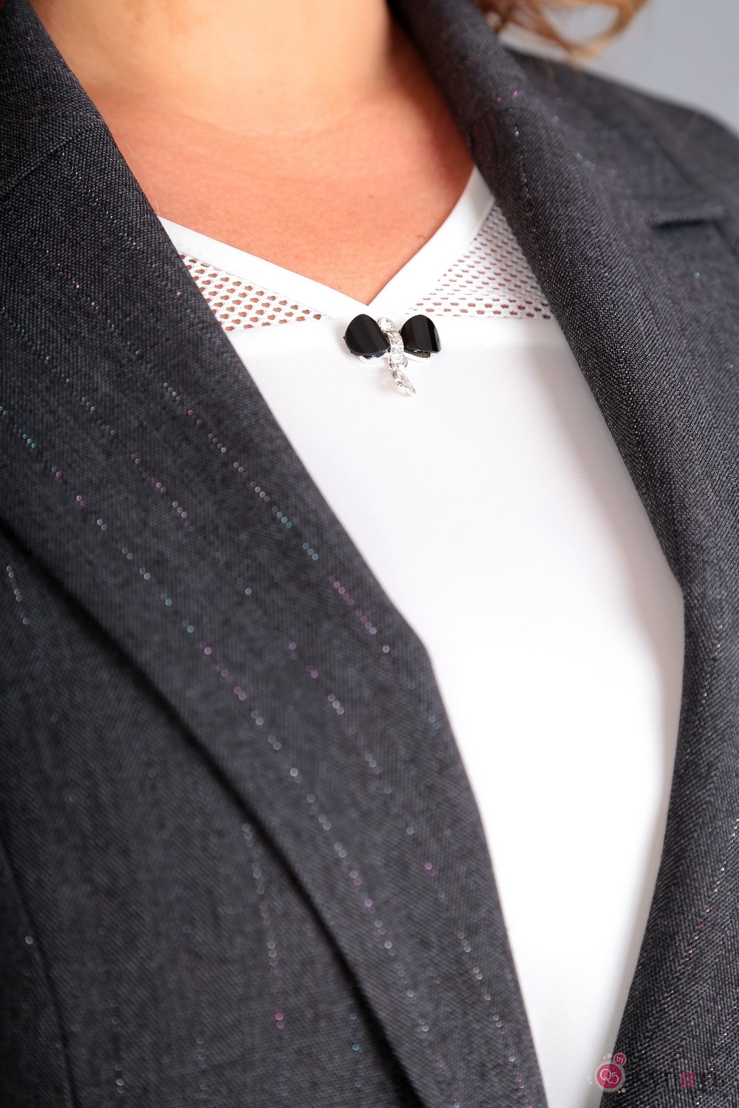 Жилет и брюки: полиэстер – 60% вискоза – 25% металл.нить– 15% Блуза: полиэстер – 80% вискоза – 20%