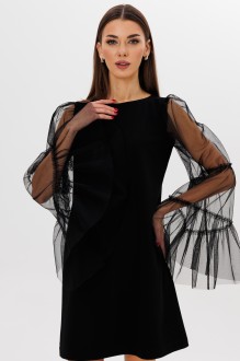 Это платье полуприлегающего силуэта из костюмно-плательной ткани воплощает собой утонченность и элегантность. Рукава из фатина, выполненные из нескольких уровней оборки, придают платью воздушность и легкость, создавая эффектный и романтичный образ. Комбинируя строгий крой с изысканными деталями, это платье станет идеальным выбором для особых случаев, подчёркивая вашу изящность и неповторимый стиль.