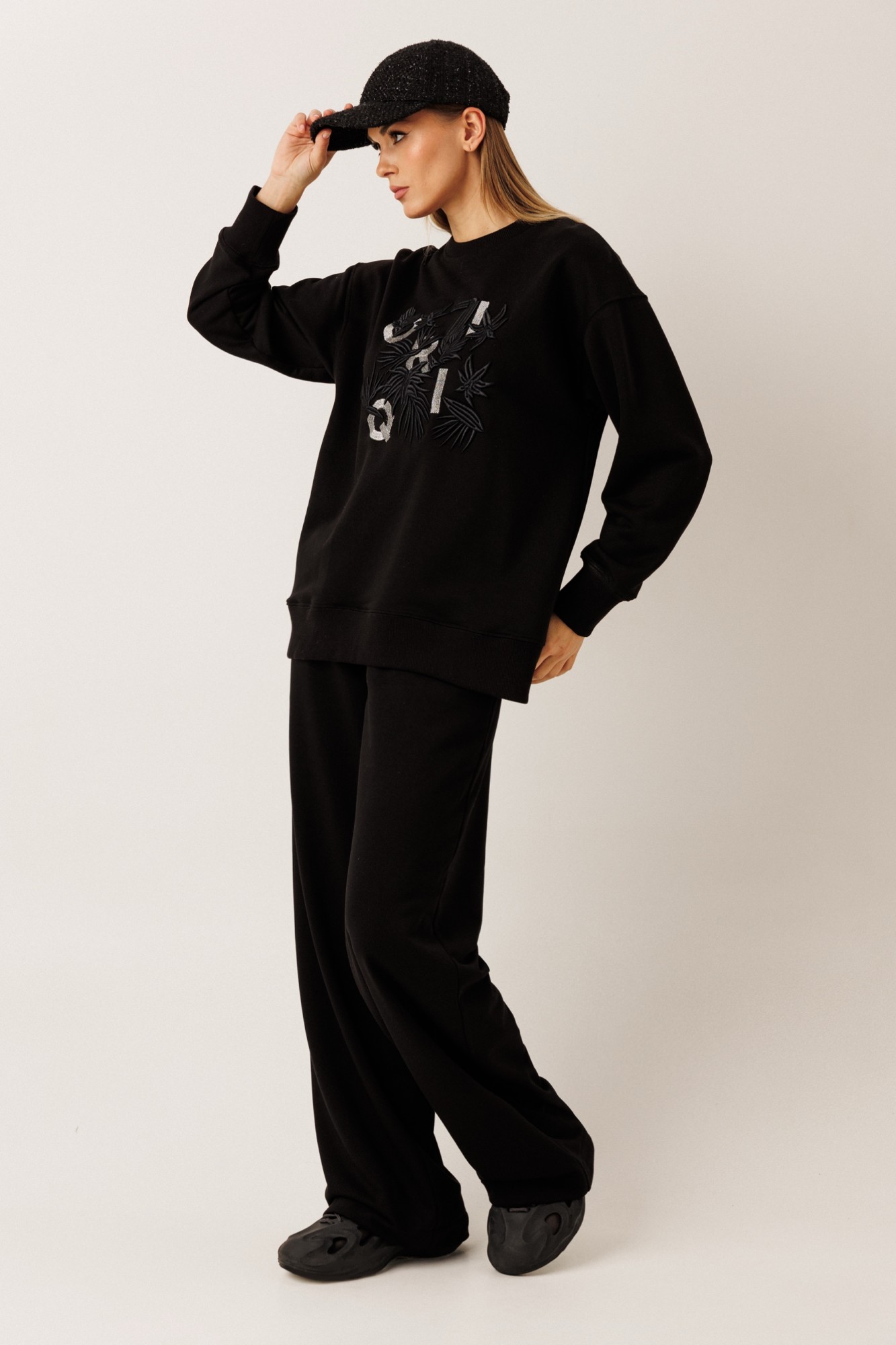 Комплект состоит из свитшота и брюк: