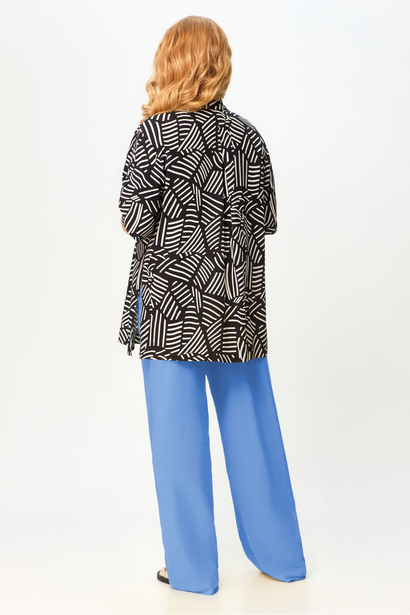 Блузка: длина спинки – 79 см. Брюки: длина по боковому шву – 105 см. Длина рукава - 29 см, ширина рукава – 22 см.
