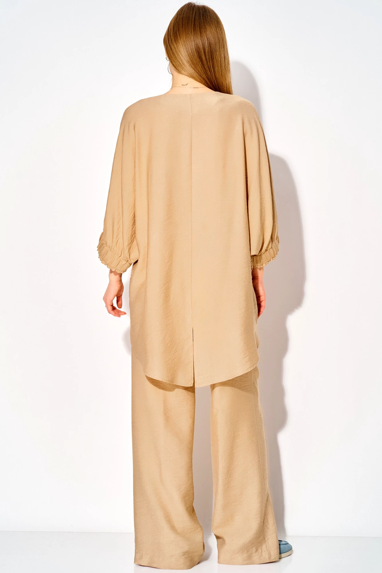 Длина туники по спинке 86 см, длина рукава 53 см от горловины.