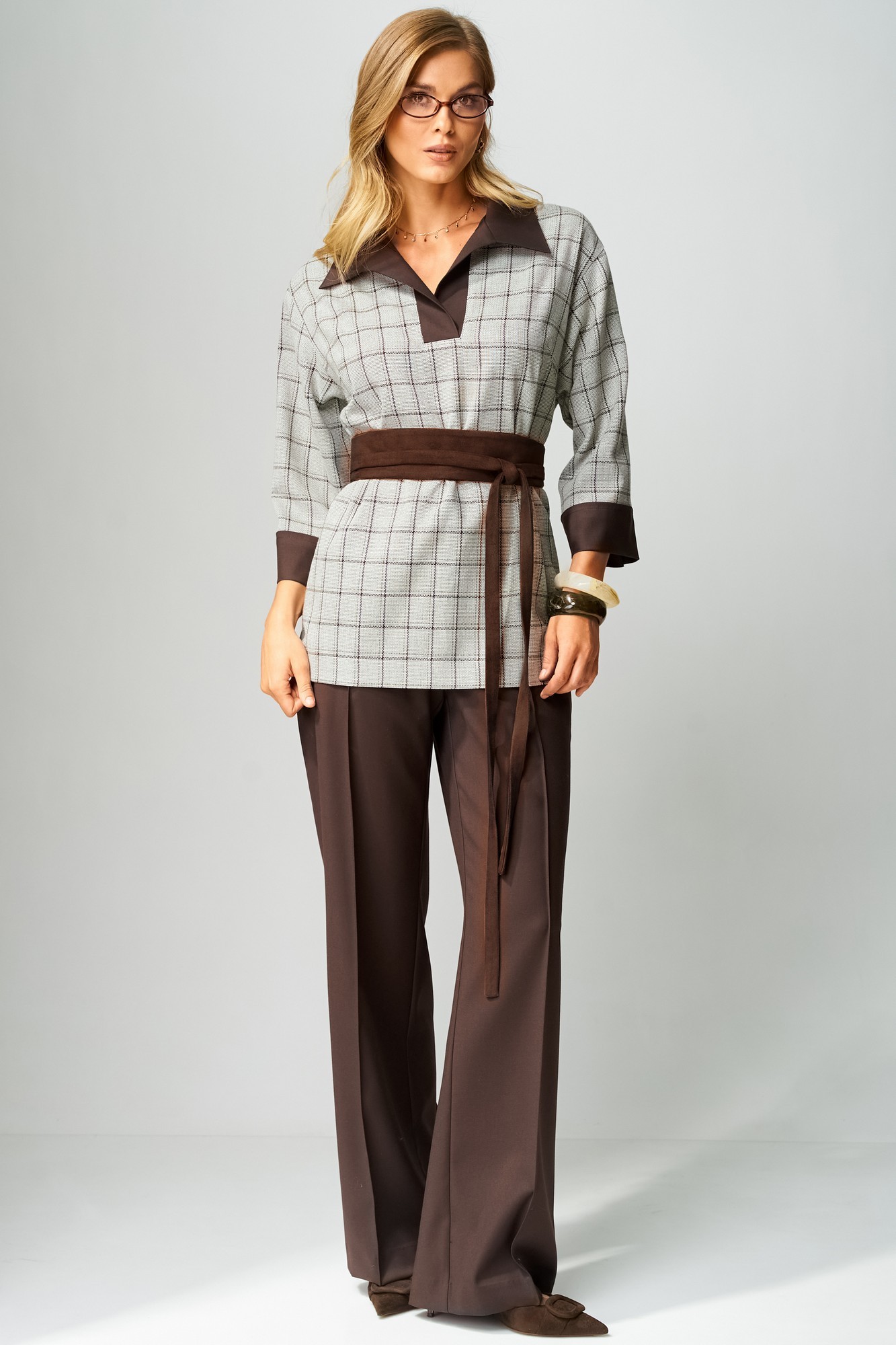 Стильный офисный комплект от LAIKONY, состоящий из жакета и брюк. Жакет полуприлегающего силуэта, длиной до линии бедер. Воротник втачной. Перед с нагрудными вытачками и с втачными планками по горловине. Спинка цельная, в боковых швах разрезы. Рукава втачные одношовные длиной 7/8 с притачными манжетами, линия плеча спущена. Съемный пояс в комплекте. Брюки на бедрах, плотно облегающие вверху и прямые к низу, с притачным поясом. Застежка на тесьму-молнию и 1 потайной крючок. На передних половинках брюк в боковых швах обработаны наклонные карманы. На задних частях брюк обработаны вытачки и расположены накладные карманы. На задних половинках брюк заутюжены «канты», на передних - проложена отделочная строчка. На поясе прикреплены 5 шлёвок. Декор может отличаться от представленного на фотографии. Наш модный костюм идеально подойдет для офиса и повседневного использования.