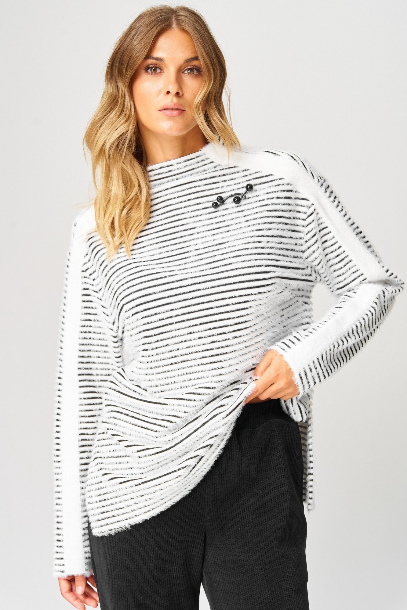 Стильный трикотажный комплект от LAIKONY свободного силуэта, состоящий из джемпера и брюк. Джемпер длиной ниже линии бедер. Вырез горловины «под горло», с цельнокроеной стойкой. Спинка цельная, в боковых швах обработаны разрезы. Рукава втачные одношовные, по плечевым швам со стороны детали переда и по центру рукавов настрочена декоративная тесьма. Линия плача спущена. Брюки на талии, плотно облегающие вверху и прямые к низу. Пояс притачной, в пояс вставлена эластичная тесьма. На передних половинках брюк в боковых швах обработаны карманы. Декор может отличаться от представленного на фотографии. Трикотаж средней плотности, тянется. Наш модный комплект идеально подойдет для повседневного использования.