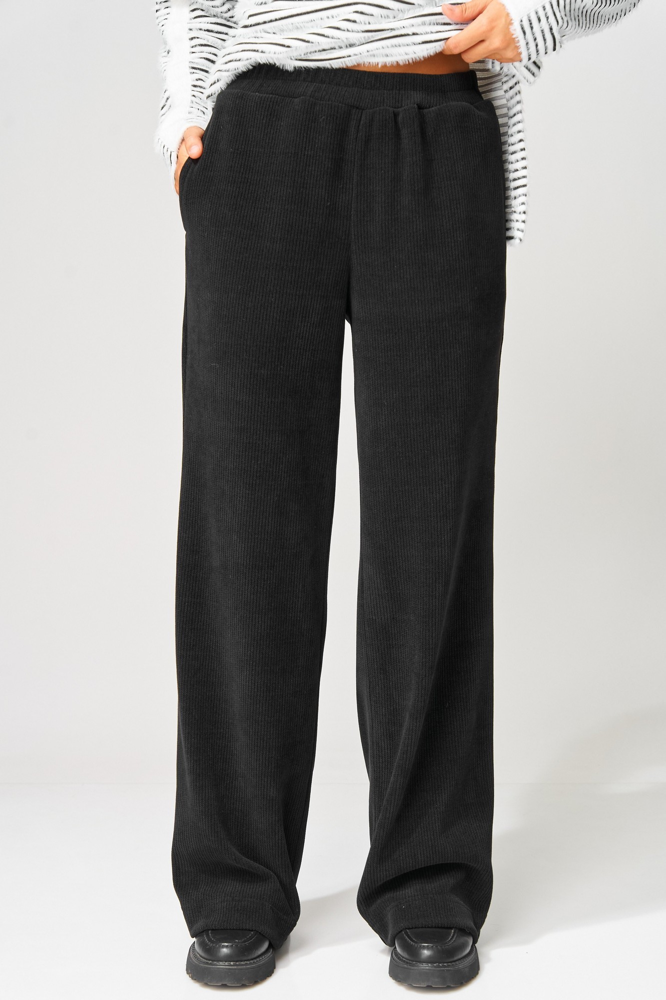 Джемпер: полиэстер 88%, ангора 7%, спандекс 5%. Брюки: полиэстер 65%, вискоза 33%, спандекс 2%