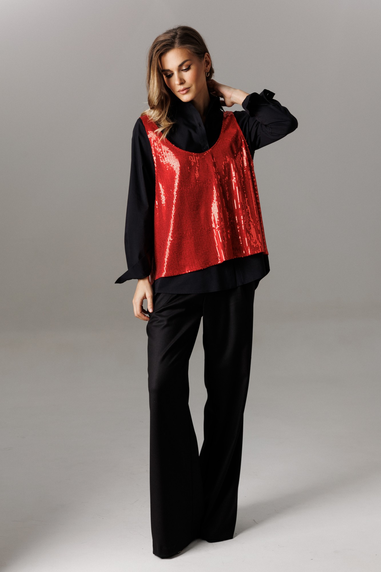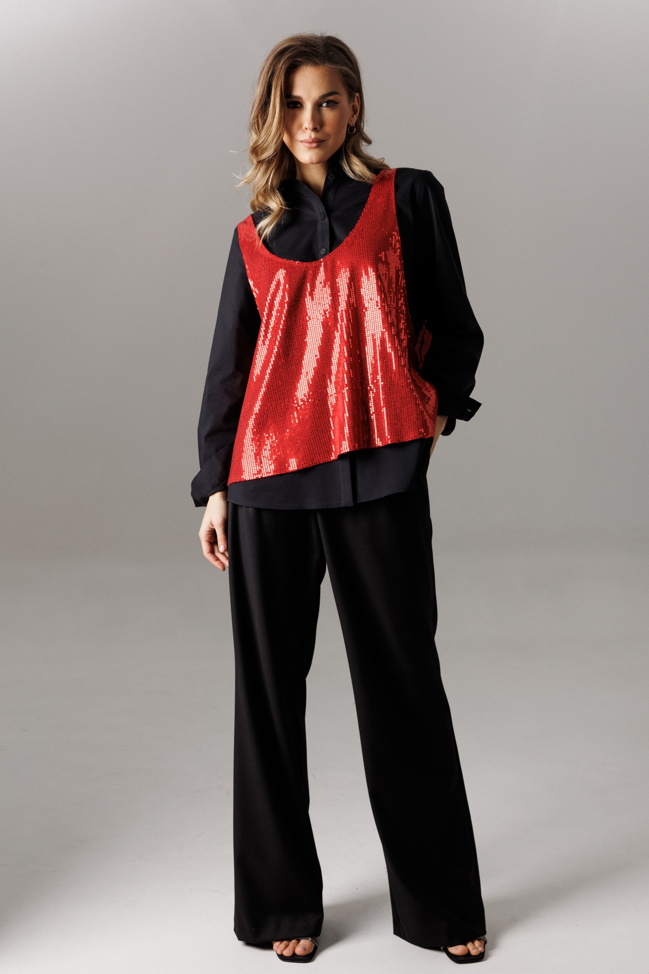 Брючный костюм Ларс Стиль 1189 тройка красный, черный