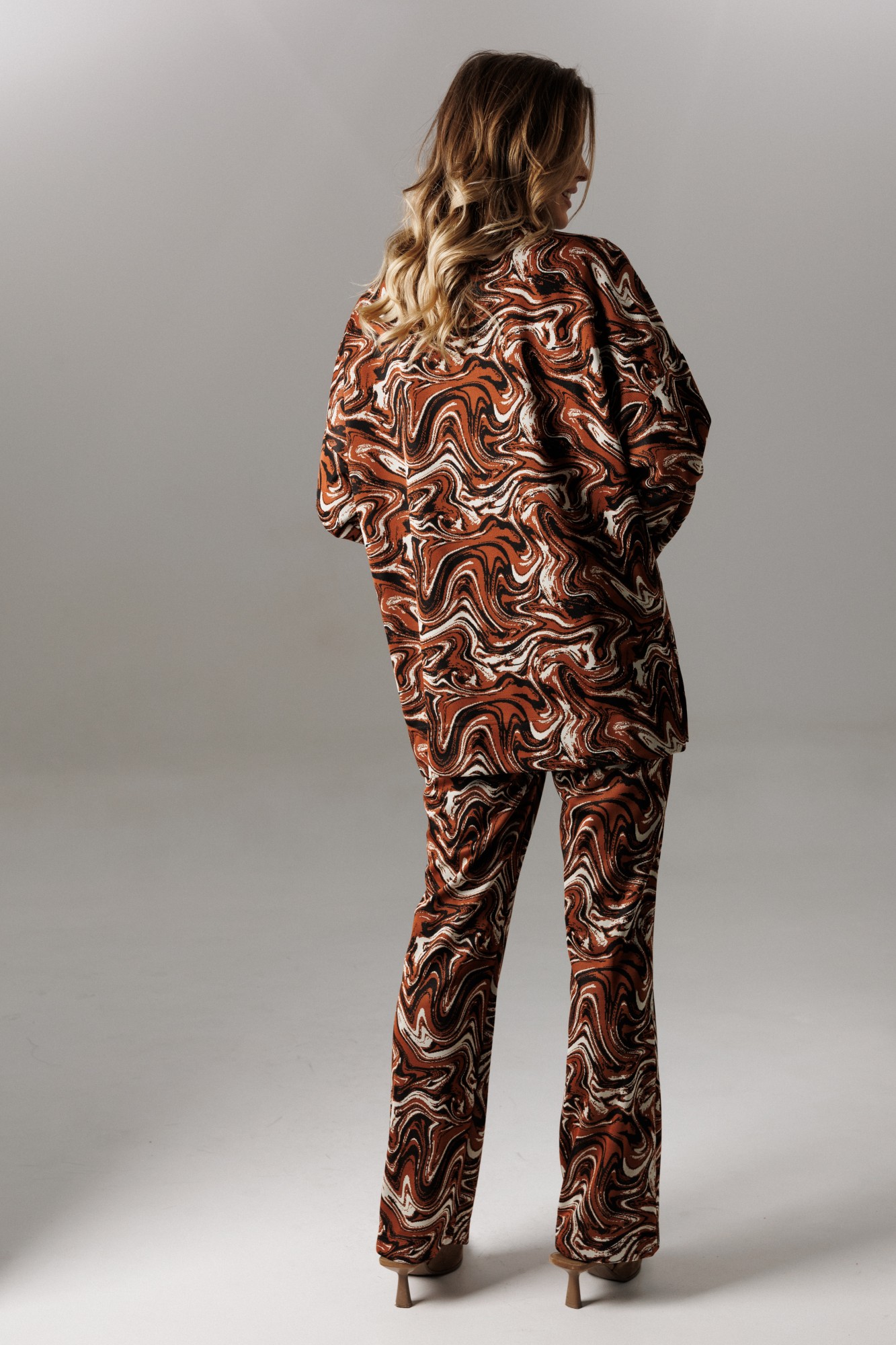 Брючный костюм Ларс Стиль 1195 шоколадно-молочный принт