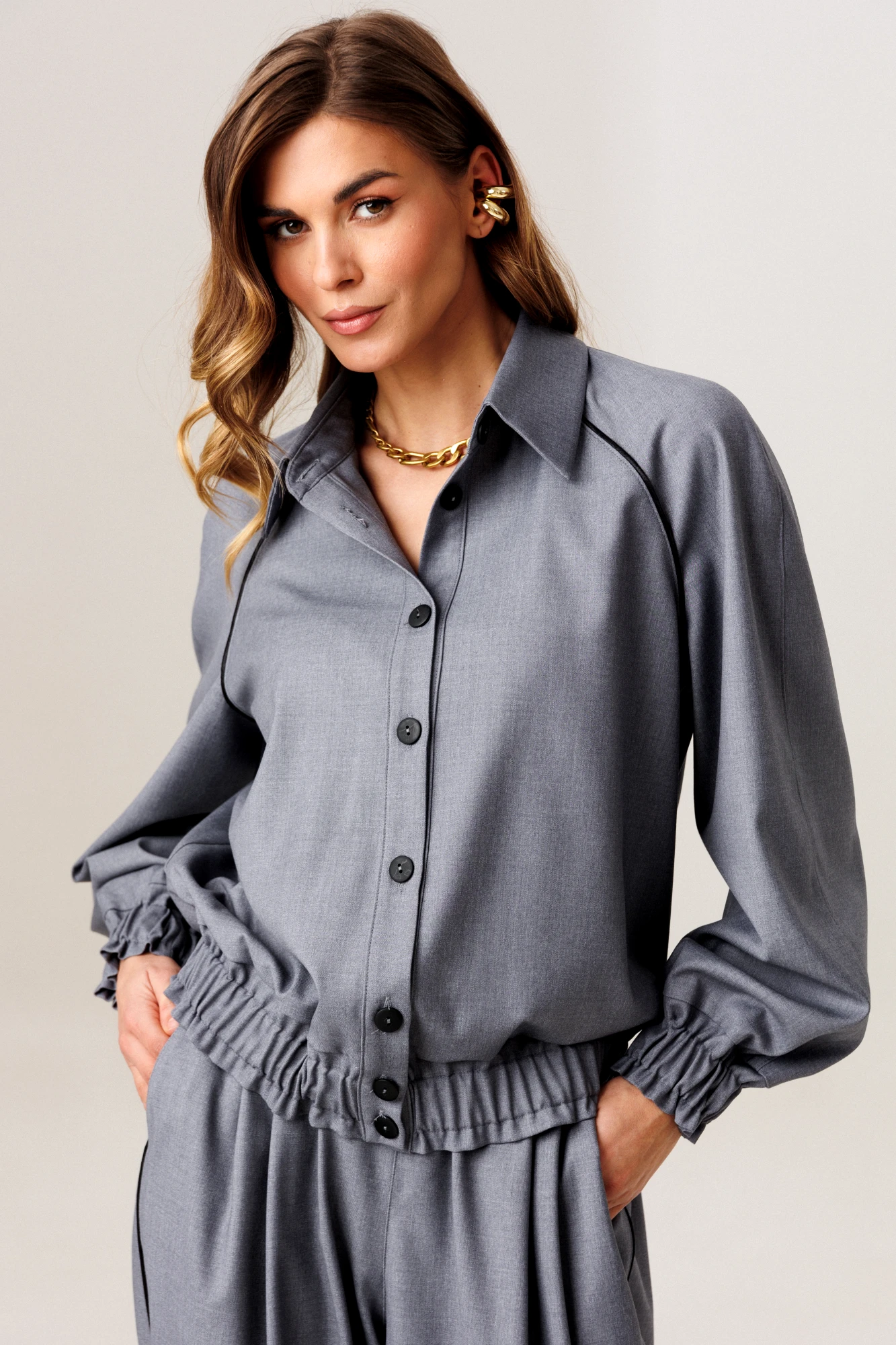 Брючный костюм Ларс Стиль 1211 серый