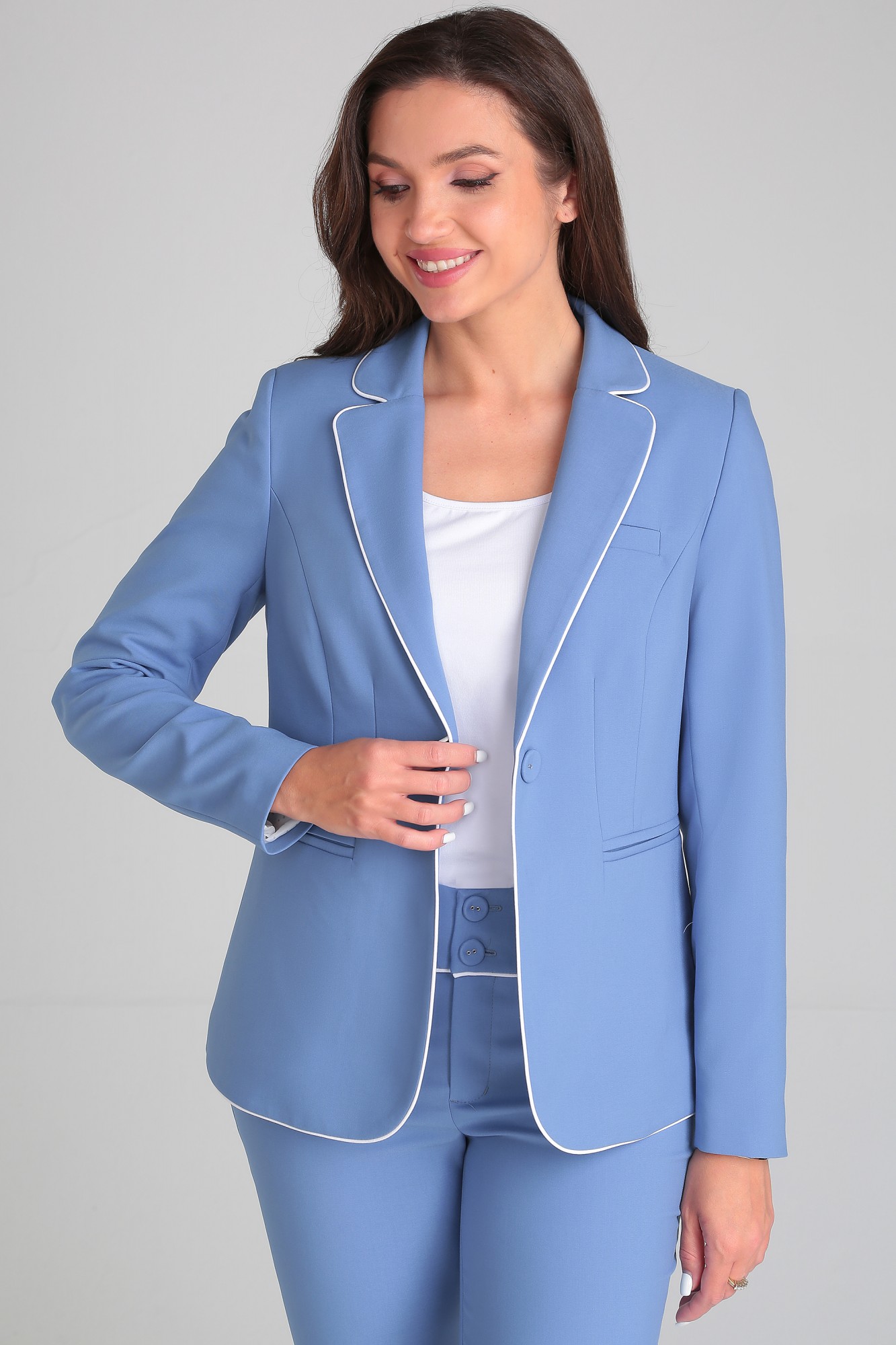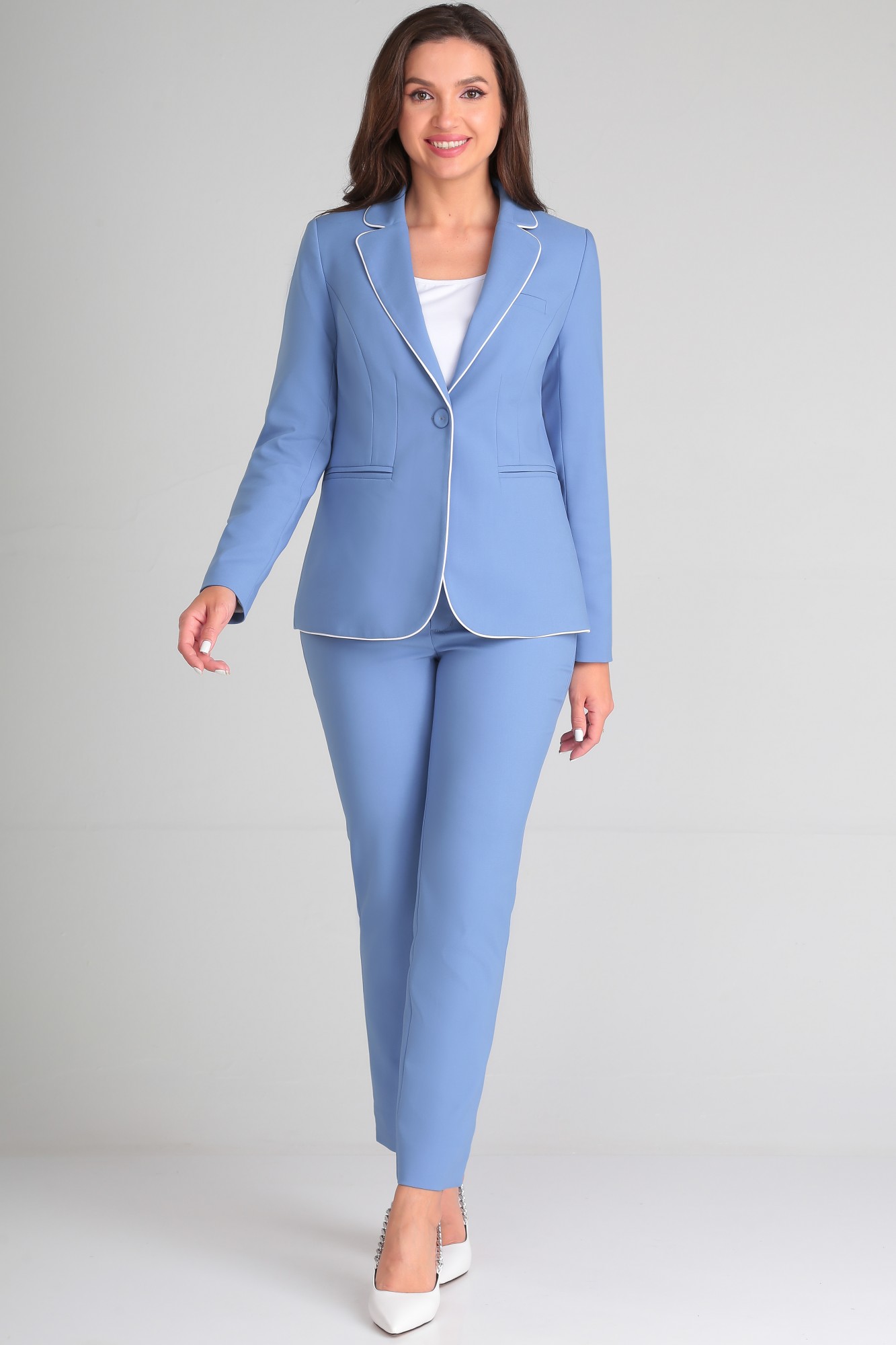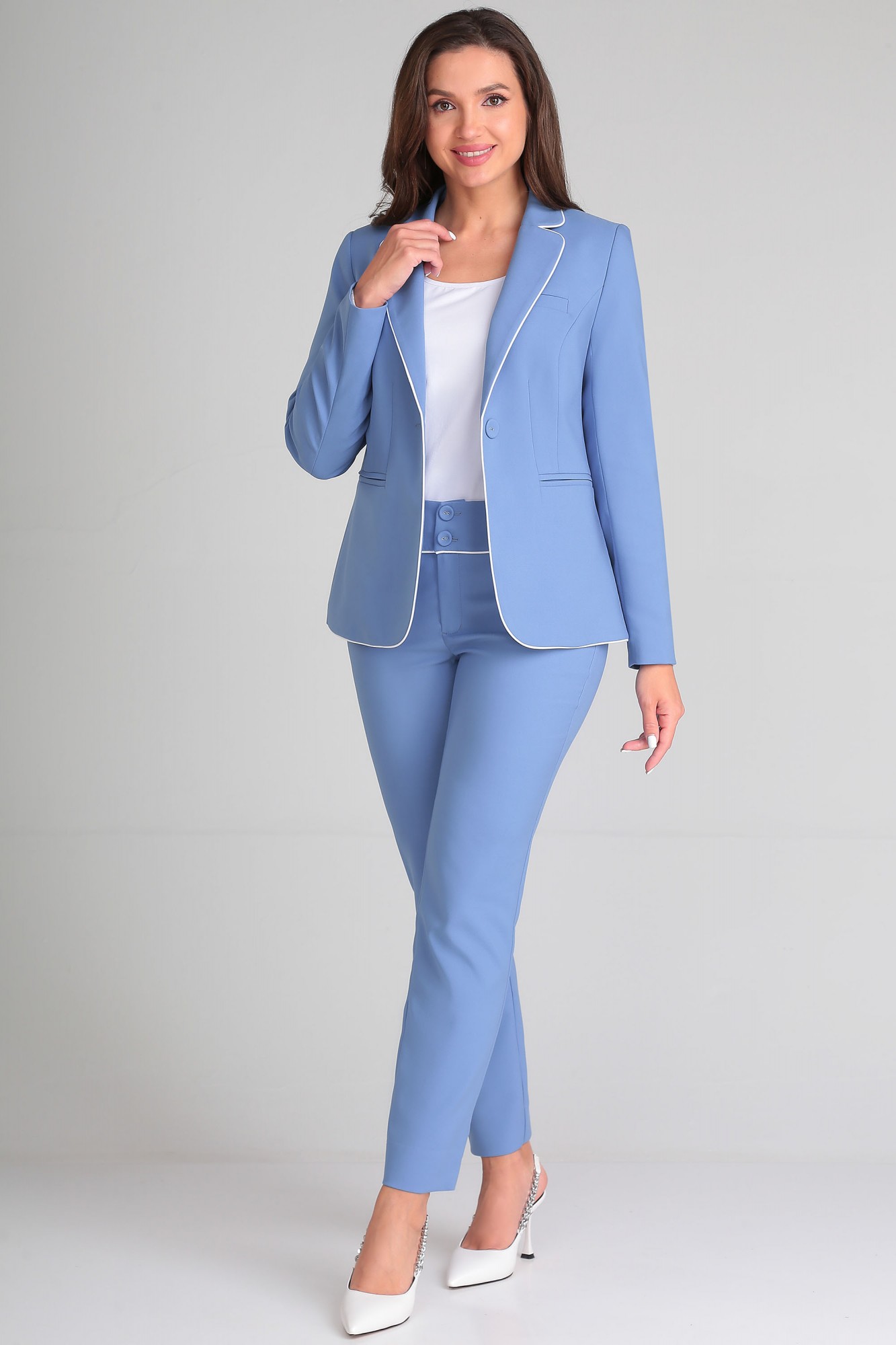 Брючный костюм LeNata 32099 тройка голубой с ID товара 369135