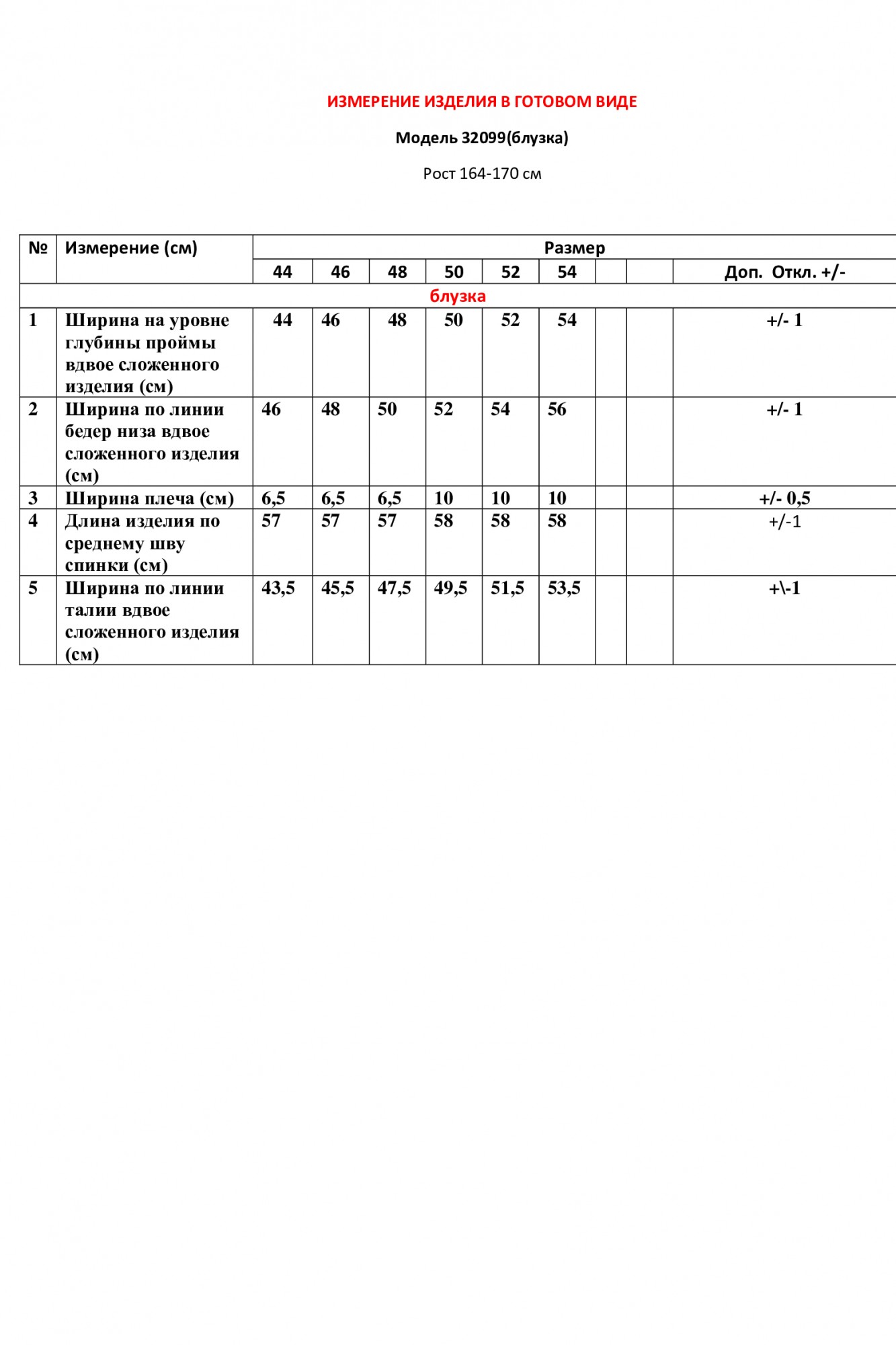 Таблица размеров