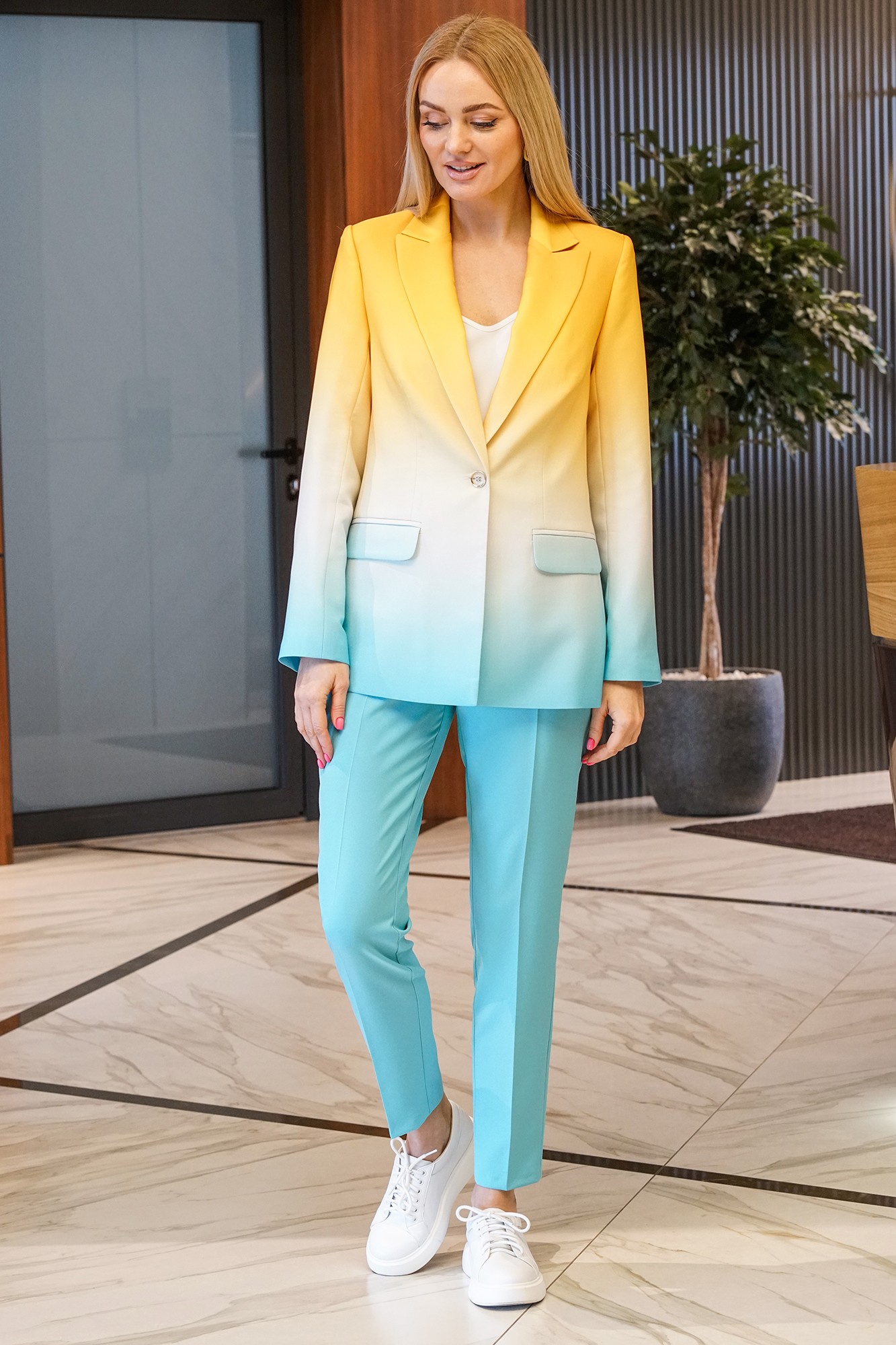 Брючный костюм ALANI COLLECTION 1866 тройка желто-голубой с ID товара 393373