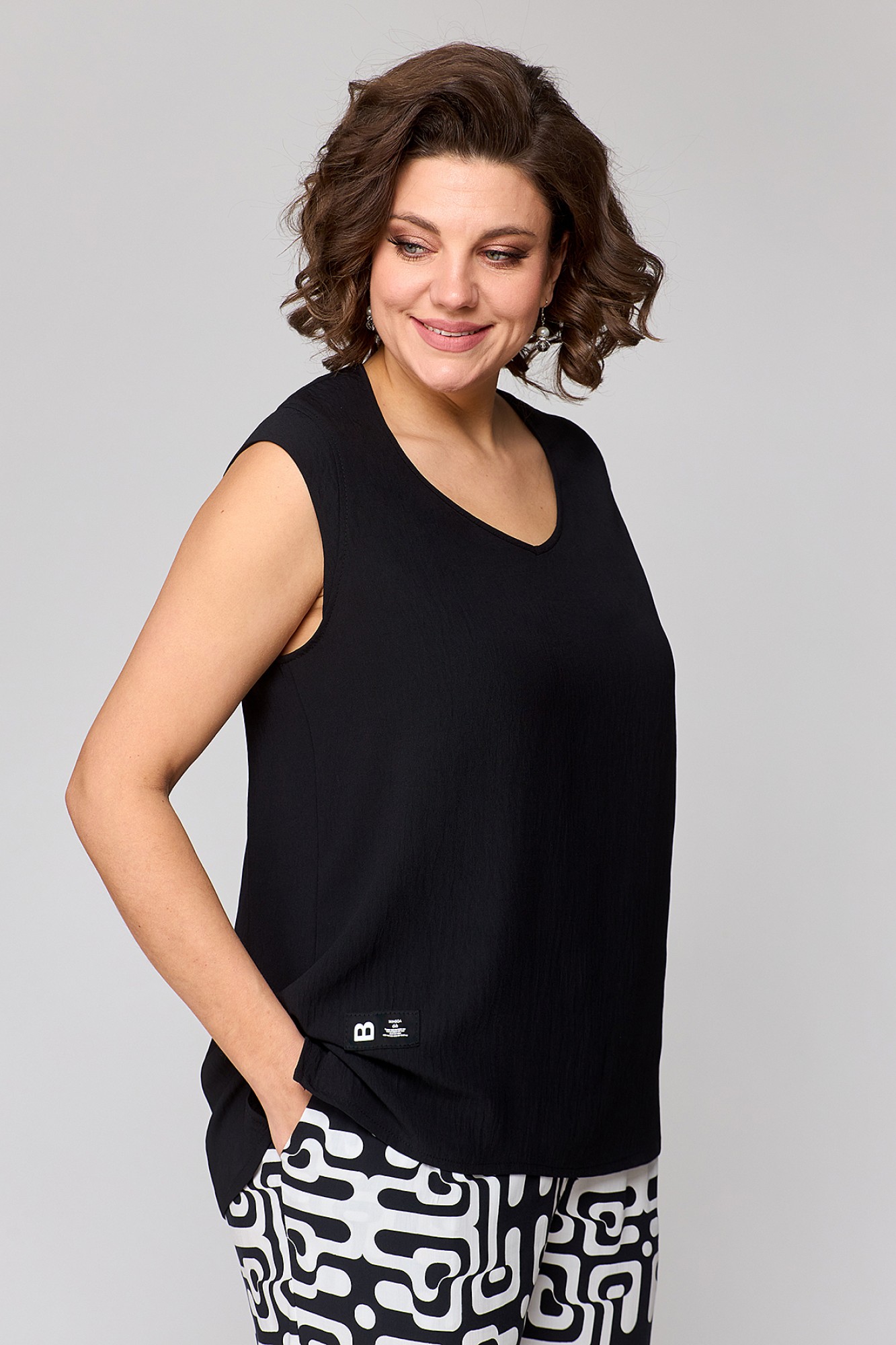 Брючный костюм ALGRANDA (Novella Sharm) A3971 тройка белый, черный с ID товара 393726