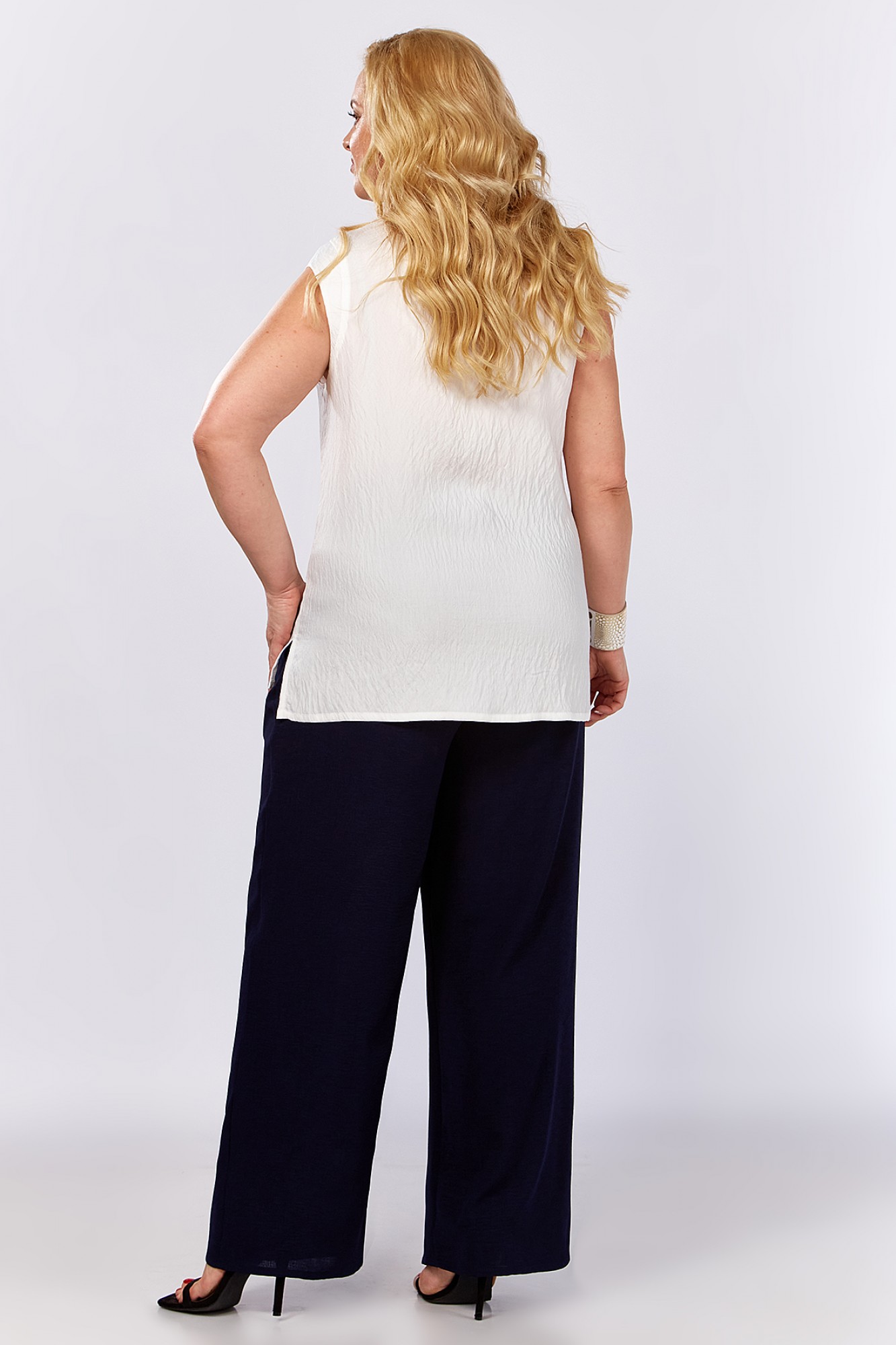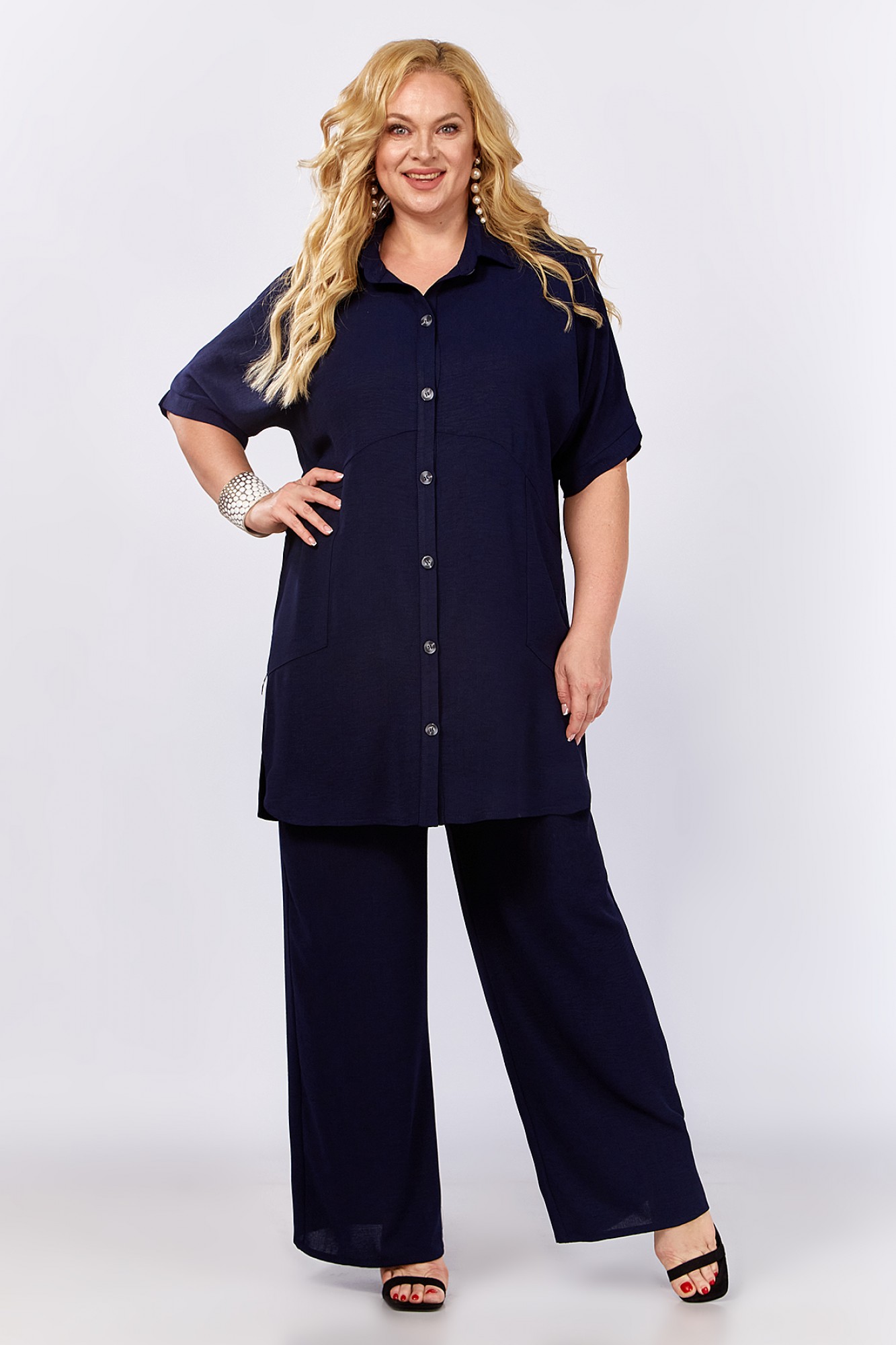 Откройте для себя стильный женский брючный комплект из рубашки, блузы и брюк, идеально подходящий для различных случаев. Костюмчик брендовый создан для женщин, ценящих комфорт и стиль. Брюки палаццо широкого кроя гармонично сочетаются с классической длинной рубашкой. Брюки частично на резинке с обработанным псевдогульфиком, с карманами в боковых швах. Блуза с разноуровневым низом, с разрезами, со спущенным плечом и декоративной нашивкой. Рубашка с коротким рукавом, и с застежкой-планкой на петли и пуговицы. Спинка со средним швом. По боковым швам обработаны разрезы. На полочке настрочены накладные карманы. Красивый летний наряд прекрасно комбинируется, позволяя создать как повседневный, так и нарядный образ. На вечеринке или фотосессии — Вы будете в центре внимания! Благодаря однотонному дизайну, комплект выглядит аккуратно и стильно, за счет чего придает уверенность каждой девушке независимо от случая - будь то корпоративное мероприятие или торжество. Легкий молодежный комплект-тройка представлен также в больших размерах, чтобы подчеркнуть индивидуальность дамам в размере плюс сайз и девушкам - любительницам оверсайз стиля и трендовых необычных образов.