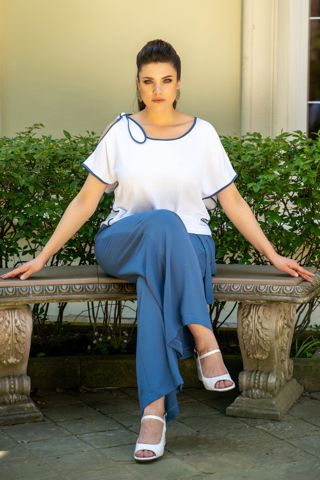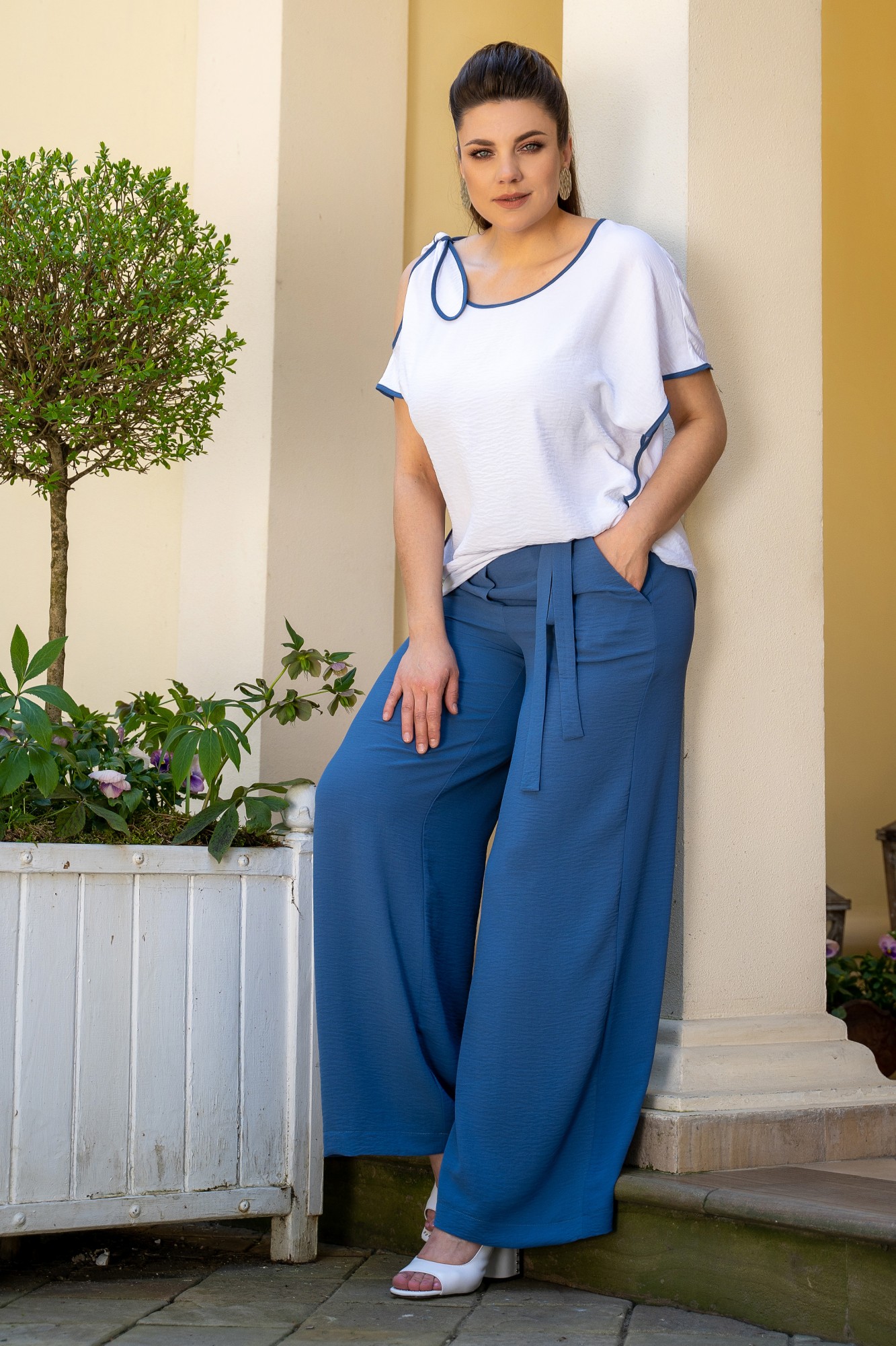 Брючный костюм ANDINA 915-3 белый/индиго с ID товара 393679