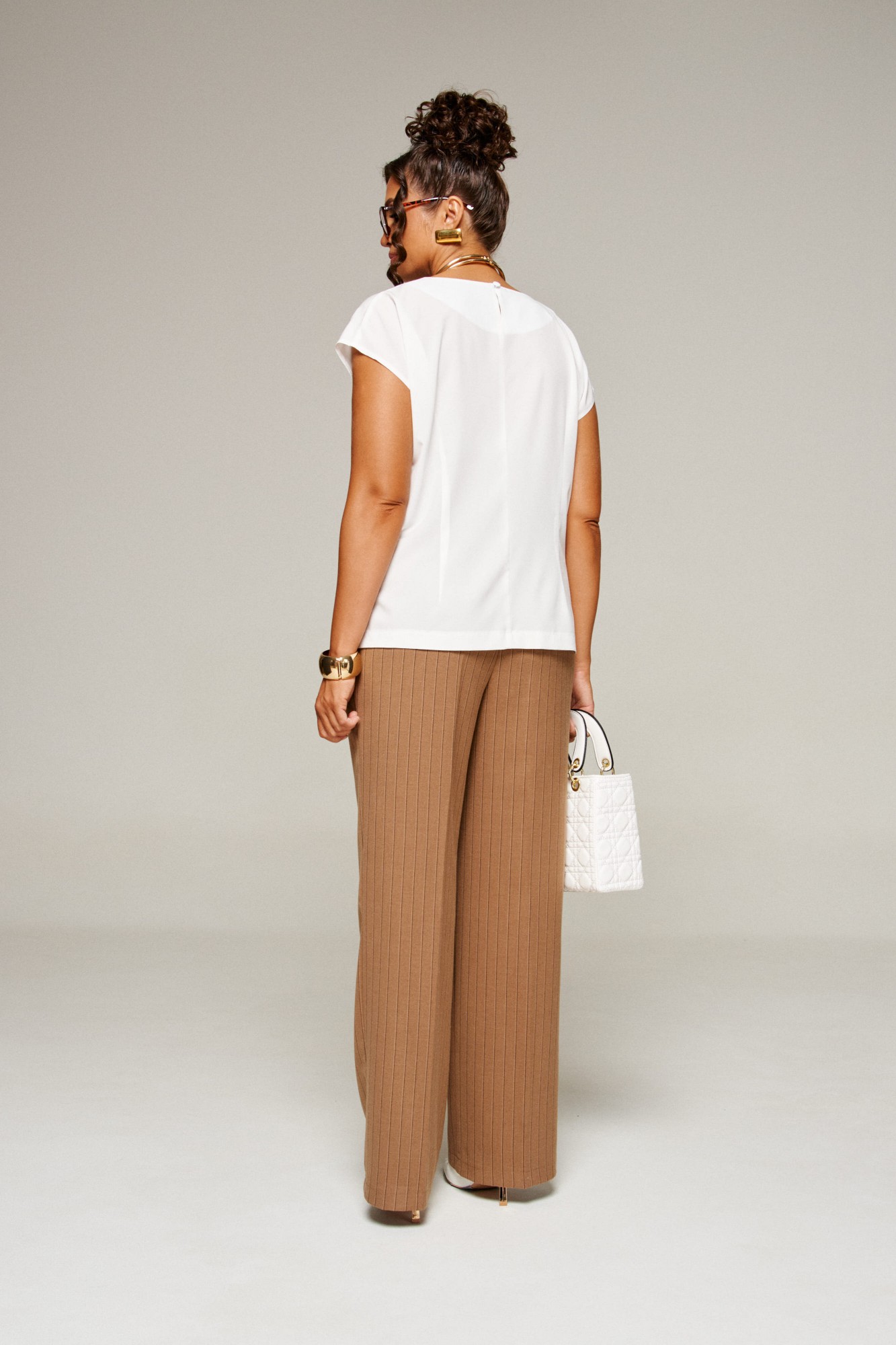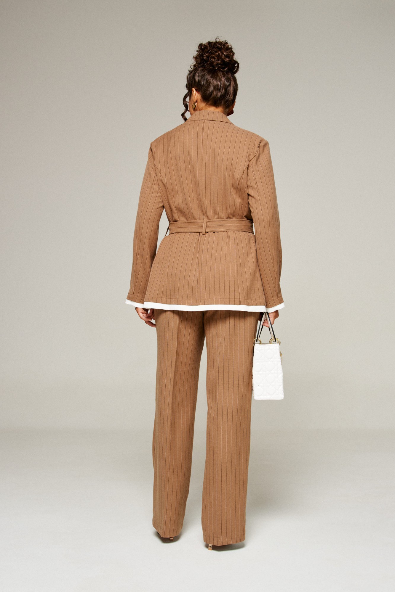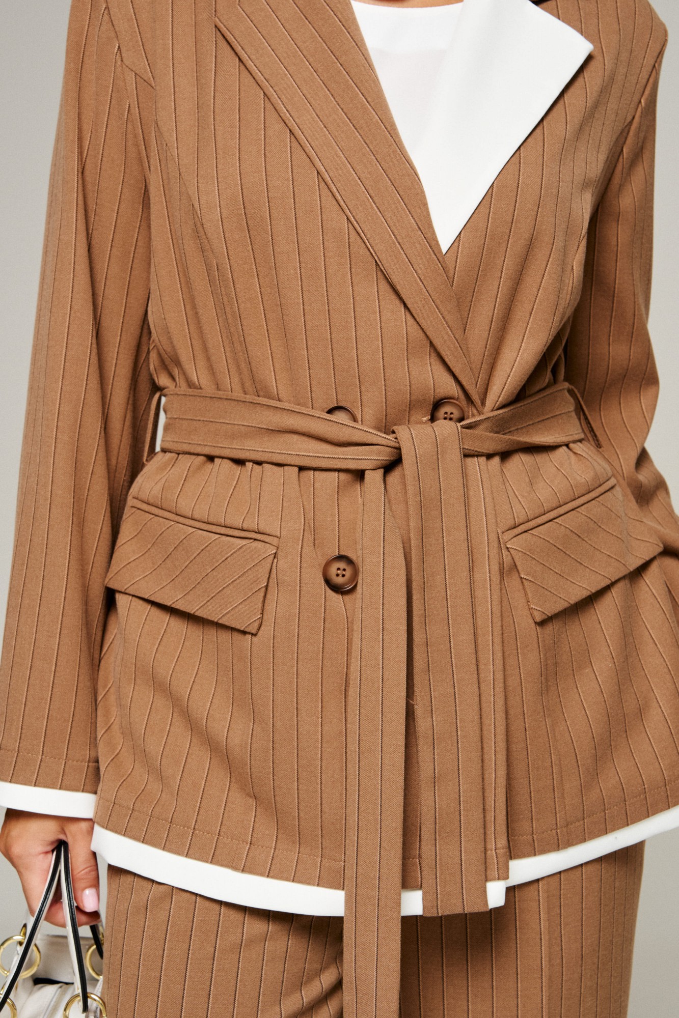 Брючный костюм Beautiful&Free 6369 тройка полоска бежевая