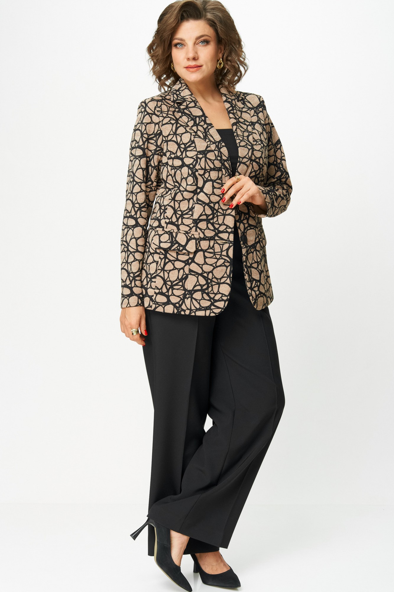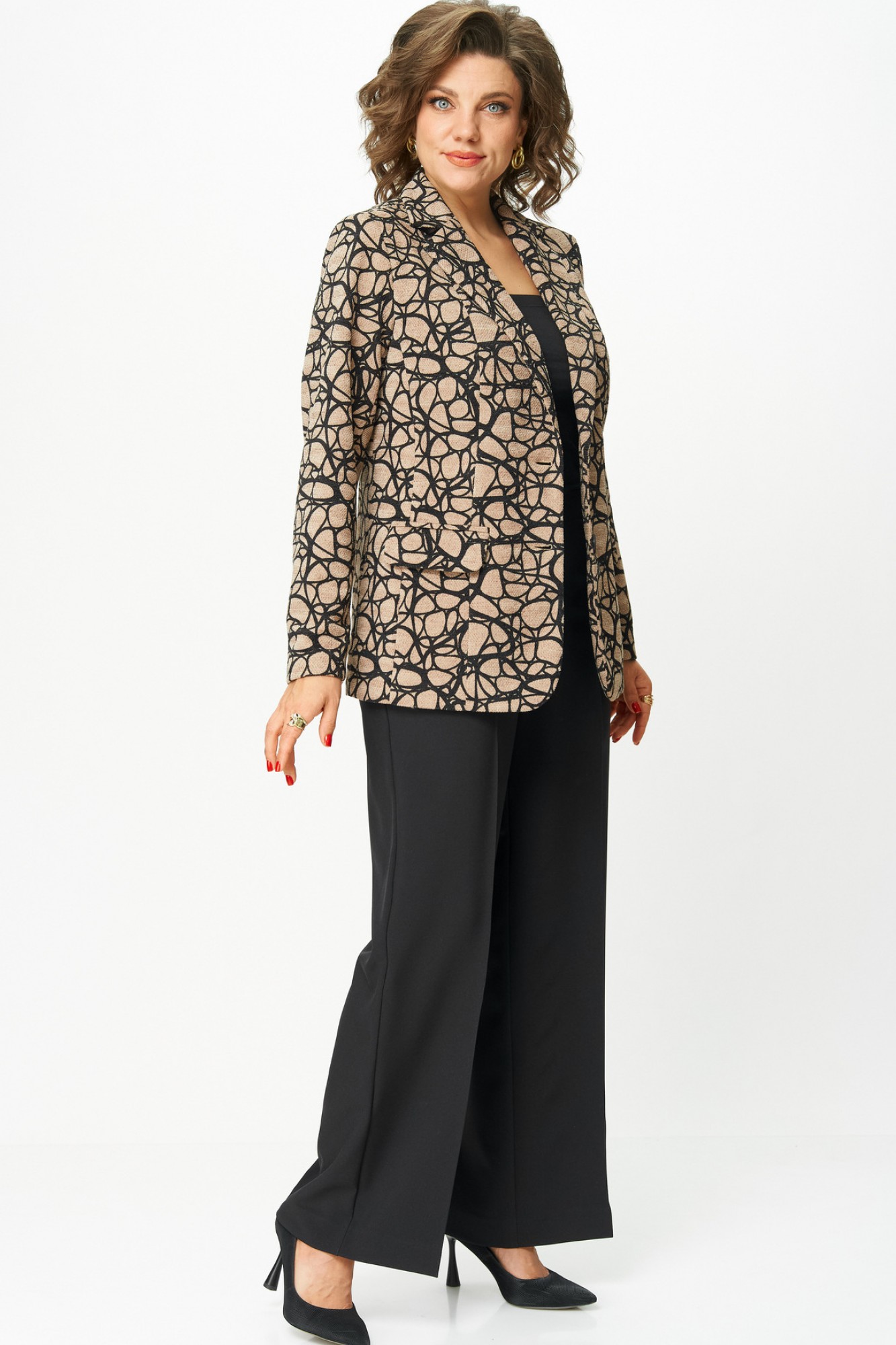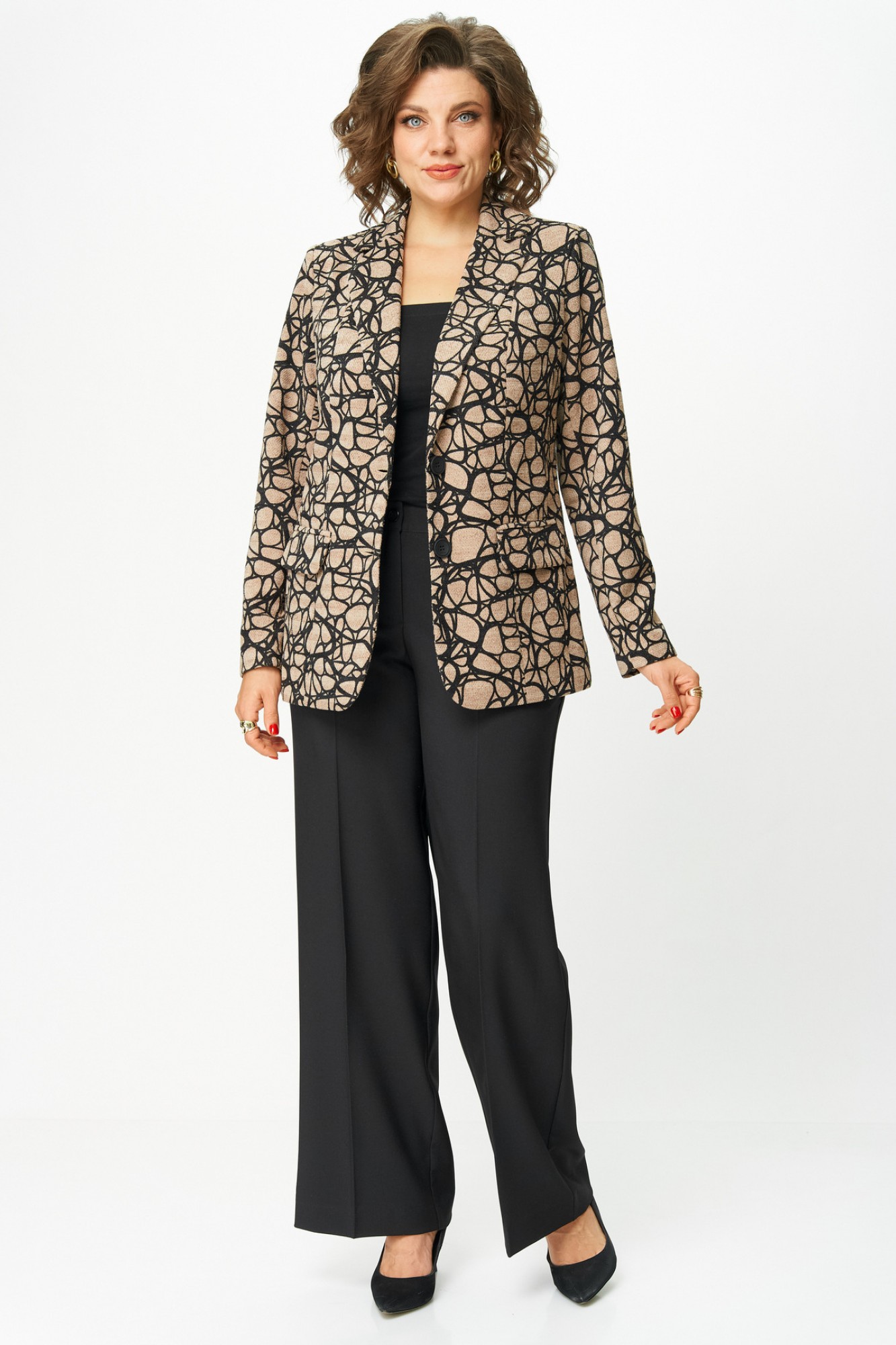 Брючный костюм БелЭльСтиль 203 + 601 беж+черный