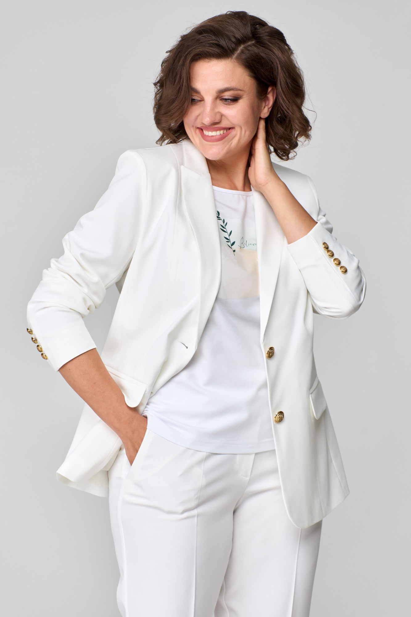 Брючный костюм БелЭльСтиль 205+596 молочный с ID товара 391820