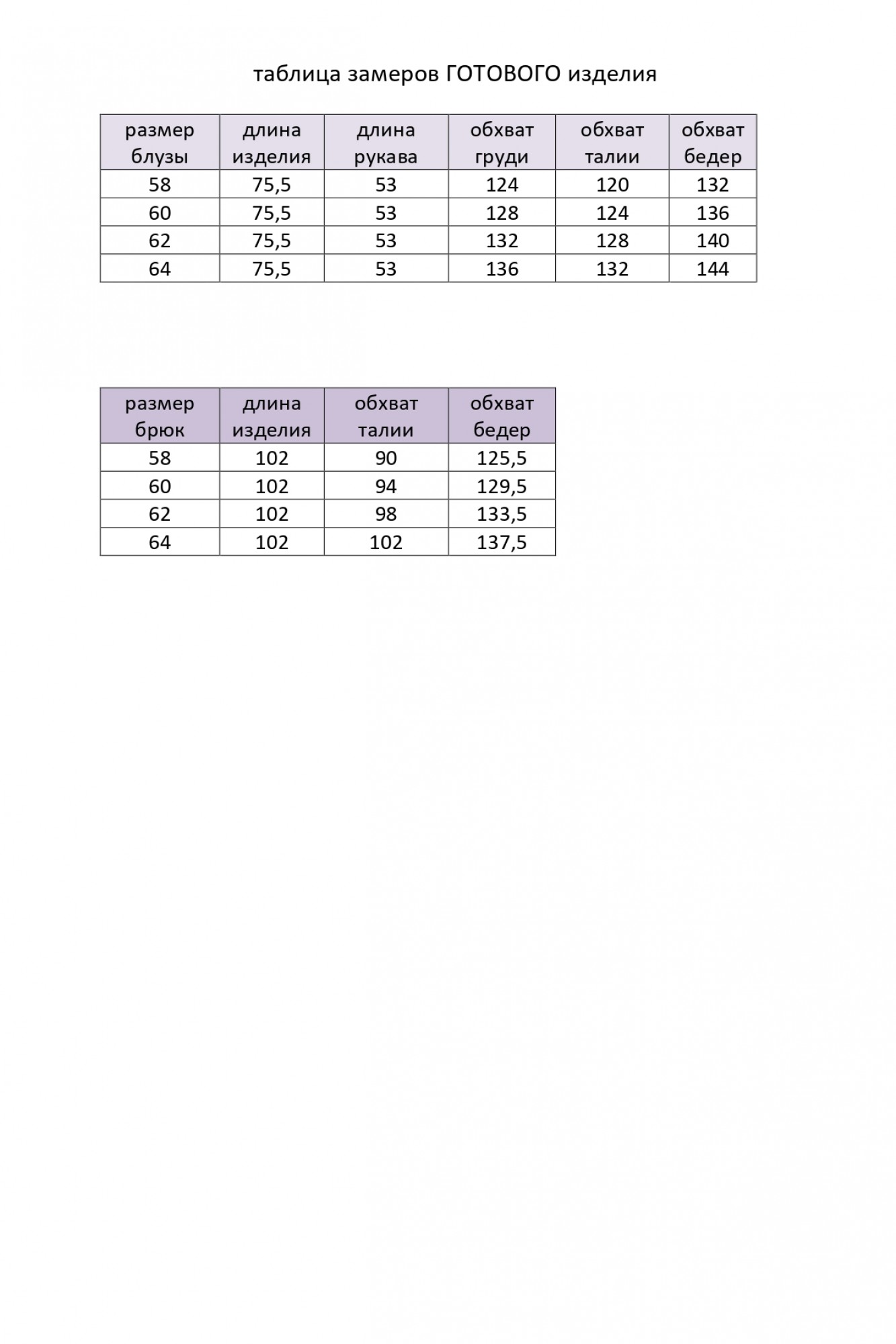 вискоза 60%, полиэстер 35%, спандекс 5% Брюки-полиэстер 50%, вискоза 50%