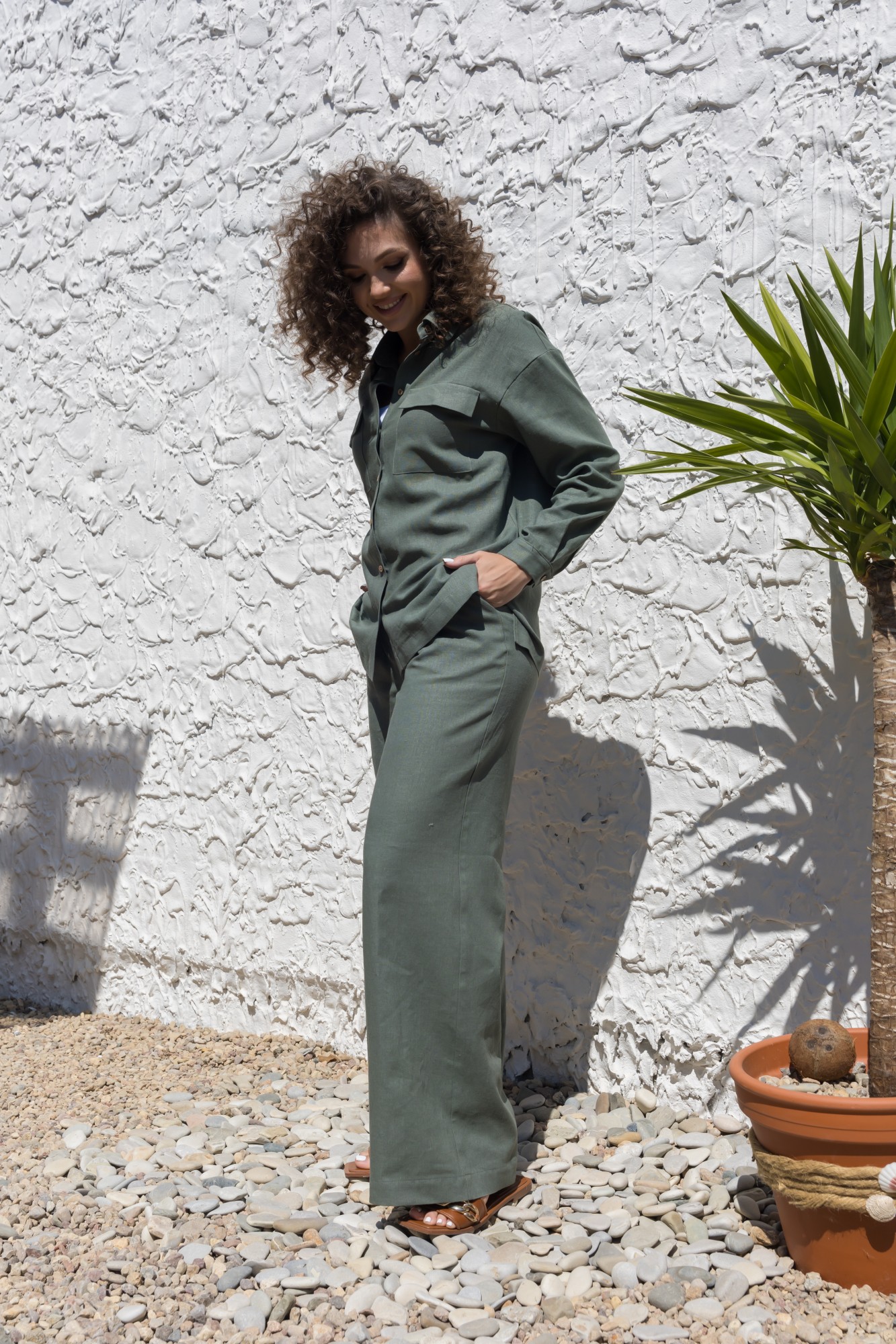 Стильный женский костюм песочного цвета из льна премиум класса в размере оверсайз. Выполнен из качественного льна в песочном цвете. Костюм состоит из свободных шорт на резинке, где имеются карманы, и льняной рубашки оверсайз кроя, что обеспечит свободу и удобство в носке, закругленный нижний край, небольшие боковые разрезы, так же костюм украшен пуговицами из кокоса. Это отличный выбор для пляжной моды в сочетании со шлепками на низком ходу , а так же идеально подходит для вечерней моды с босоножками на каблуках и маленькой сумочкой. Рубашку и шорты можно носить отдельно друг от друга, создавая огромное количество дневных и вечерних образов. Стильный льняной костюм сделает вас привлекательной и уверенной в себе.
