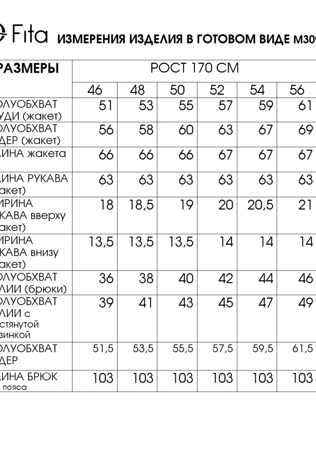 Таблица размеров
