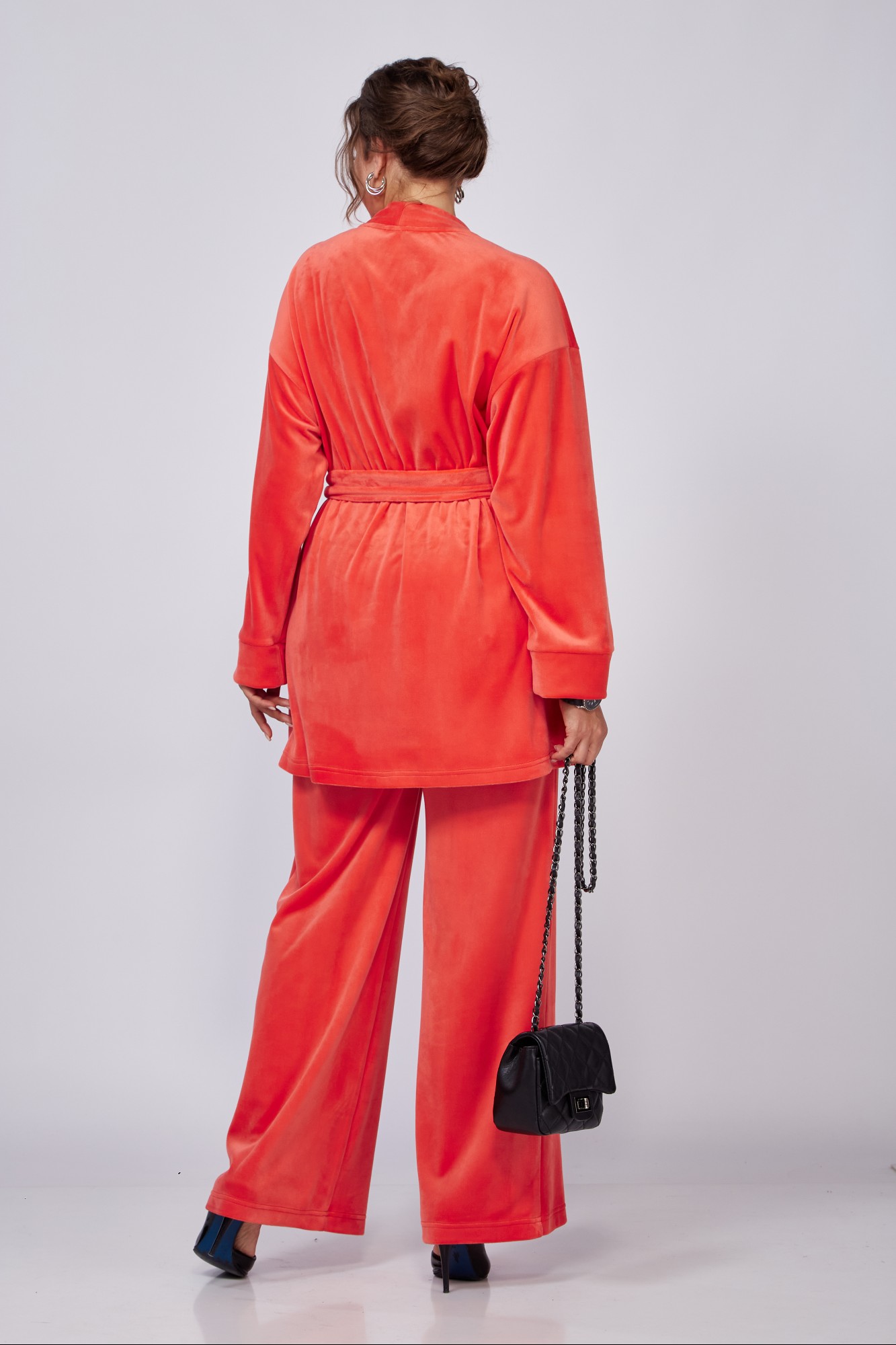 Праздничный, стильный и красивый брючный костюм в стиле oversize, выполнены из велюра с идеальной посадкой на любую фигуру, велюр густой и плотный, премиум класса. Брюки прямые свободные, пояс на мягкой резинке, ткань стрейчевая не мнется и не вытягивается в области коленей и локтей. Праздничный и нарядный велюровый костюм в классическом стиле, очень актуален в женском гардеробе : его можно надеть в офис на работу , а вечером отправиться в ресторан или на концерт. Кардиган завязывается мягким поясом который идет в комплекте , рукав втачной на спущенной пройме. Подойдет для девушек, ценящих удобство, а также комфорт, красоту и стиль.