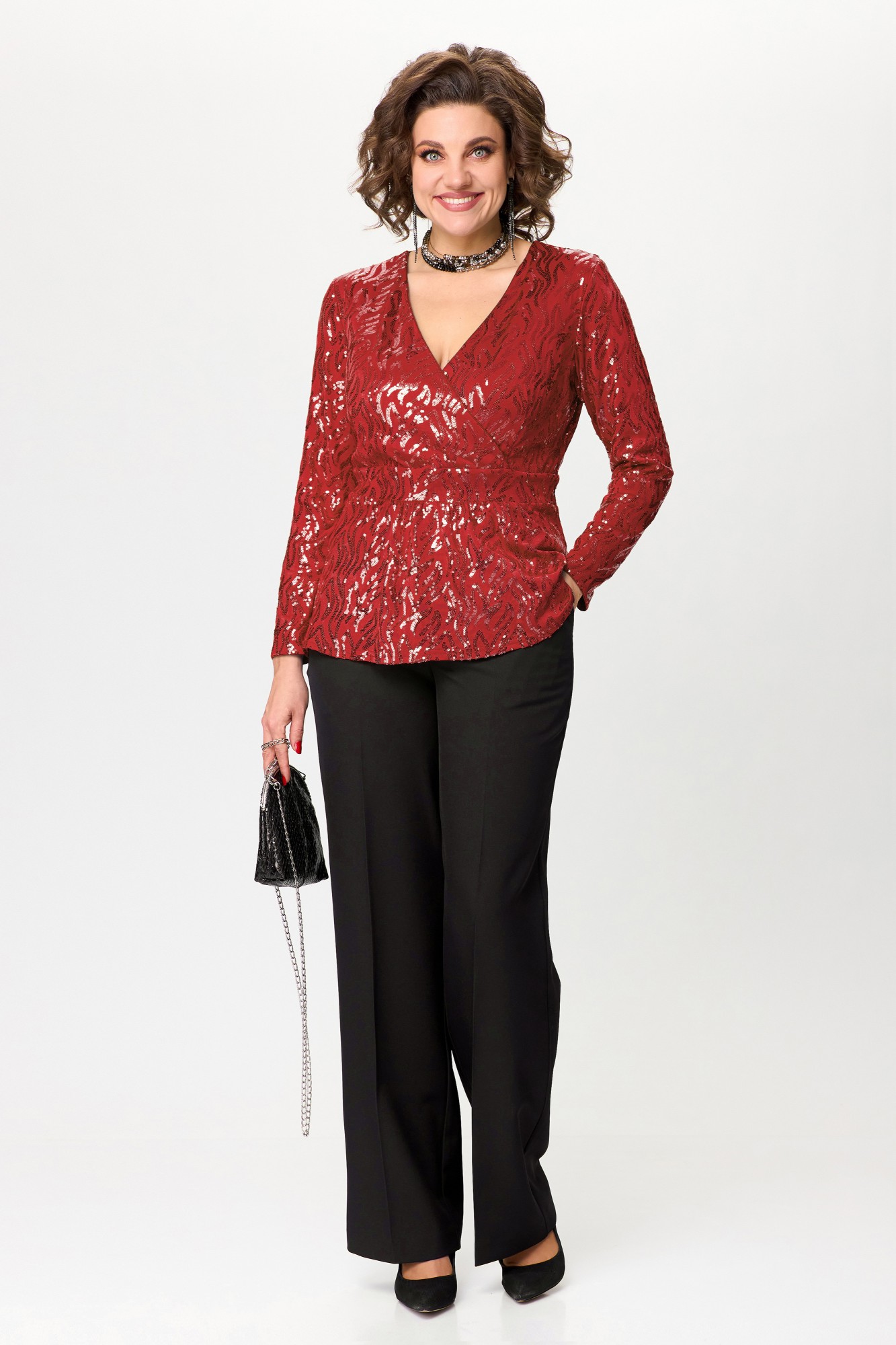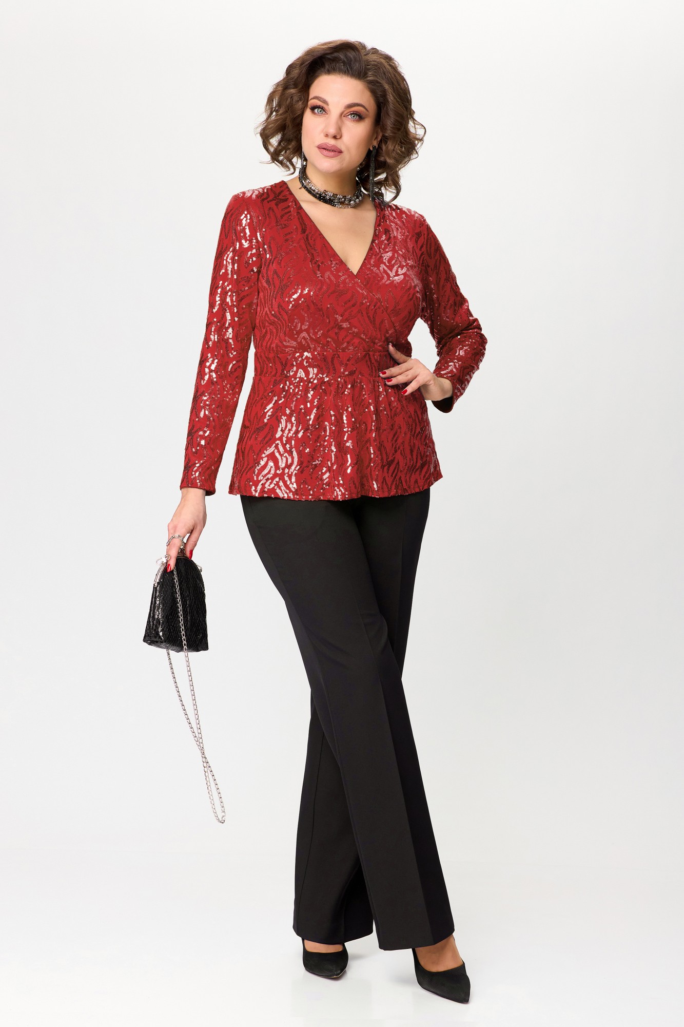 Красивый нарядный комплект двойка на подкладке. Блузон из легкой трикотажной ткани расшитой пайетками с имитацией запаха, втачным поясом и баской по переду со сборкой, рукав втачной, длинный. Все детали блузона обработаны трикотажной подкладкой, что исключает дискомфорт покалывания пайеток. Брюки из костюмной ткани прямого силуэта на притачном поясе с эластичными лентами по бокам пояса. Средней посадки. С боковыми карманами Застежка молния спереди.