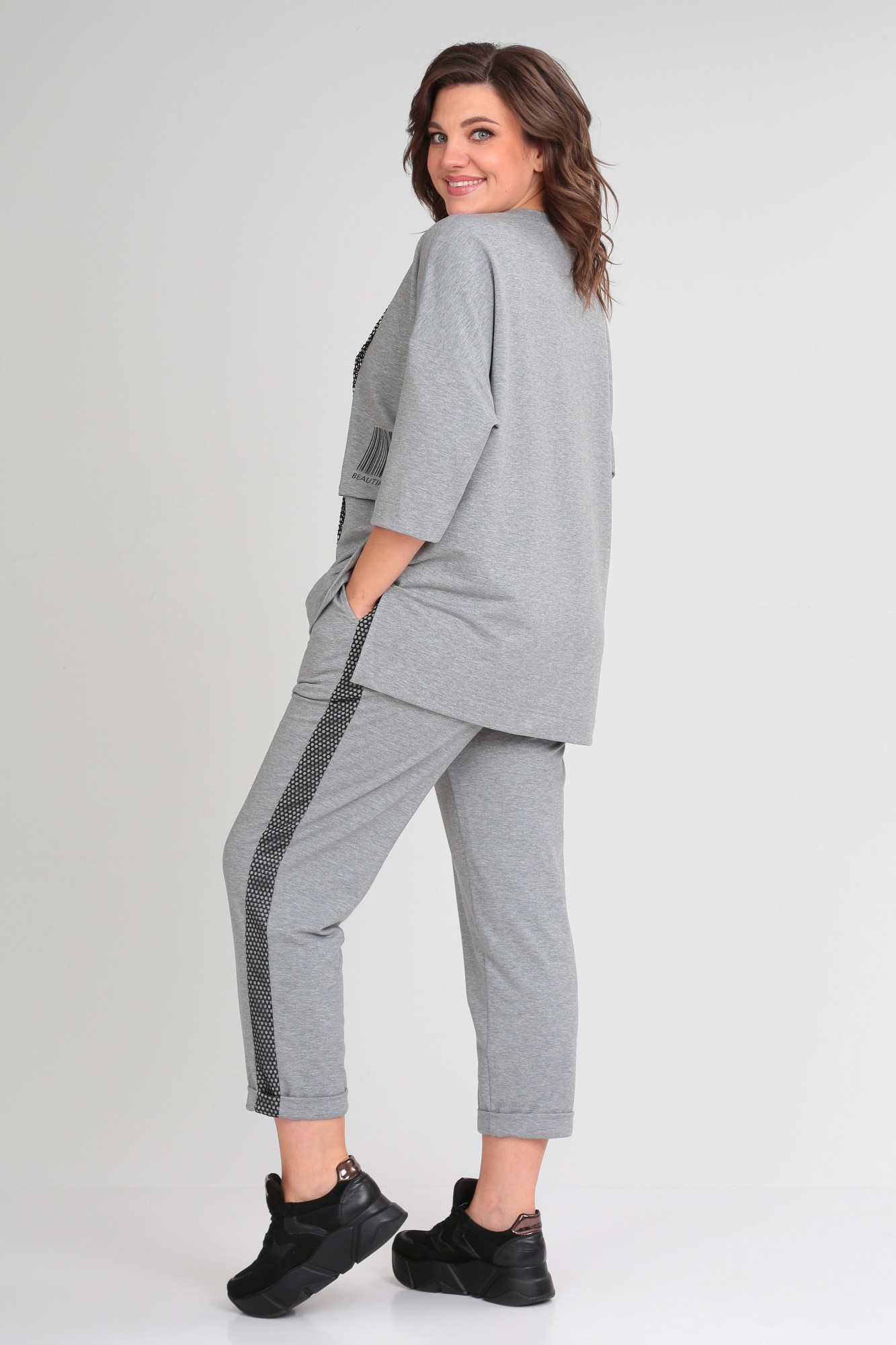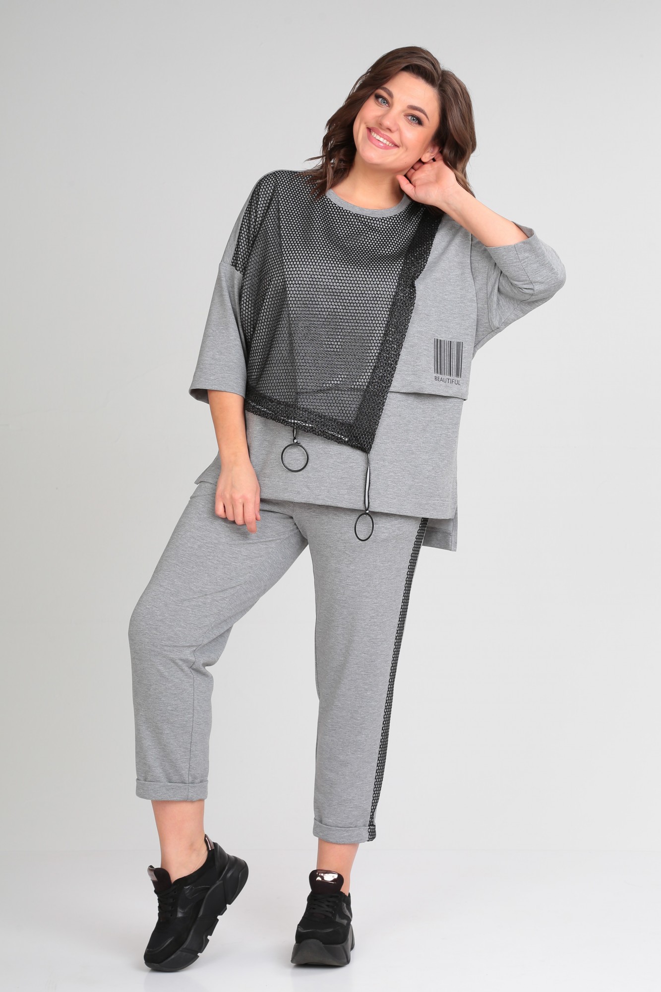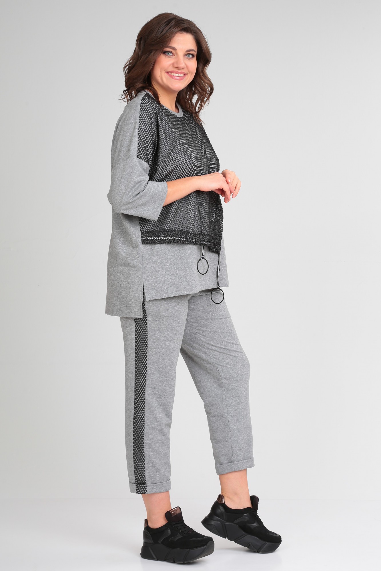 Удобный костюм выполнен из мягкого и уютного трикотажа. Брюки укороченные, свободного кроя с отворотом, будут прекрасно смотреться как на высоких, так и на миниатюрных девушках. В брюках функциональные боковые карманы, пояс на резинке, украшены крупной сеткой на лампасах. Джемпер свободного кроя, плечо приспущено, рукав ¾, украшен принтом в виде «штрихкода». Перед короче относительно спинки, по бокам разрезы, украшением служат отлетные детали со стяжками на крупных кольцах по низу. Сложный крой и функциональность костюма делает его особенным и самостоятельным. Оба изделия можно смело комбинировать с другими вещами и обувью Вашего гардероба.