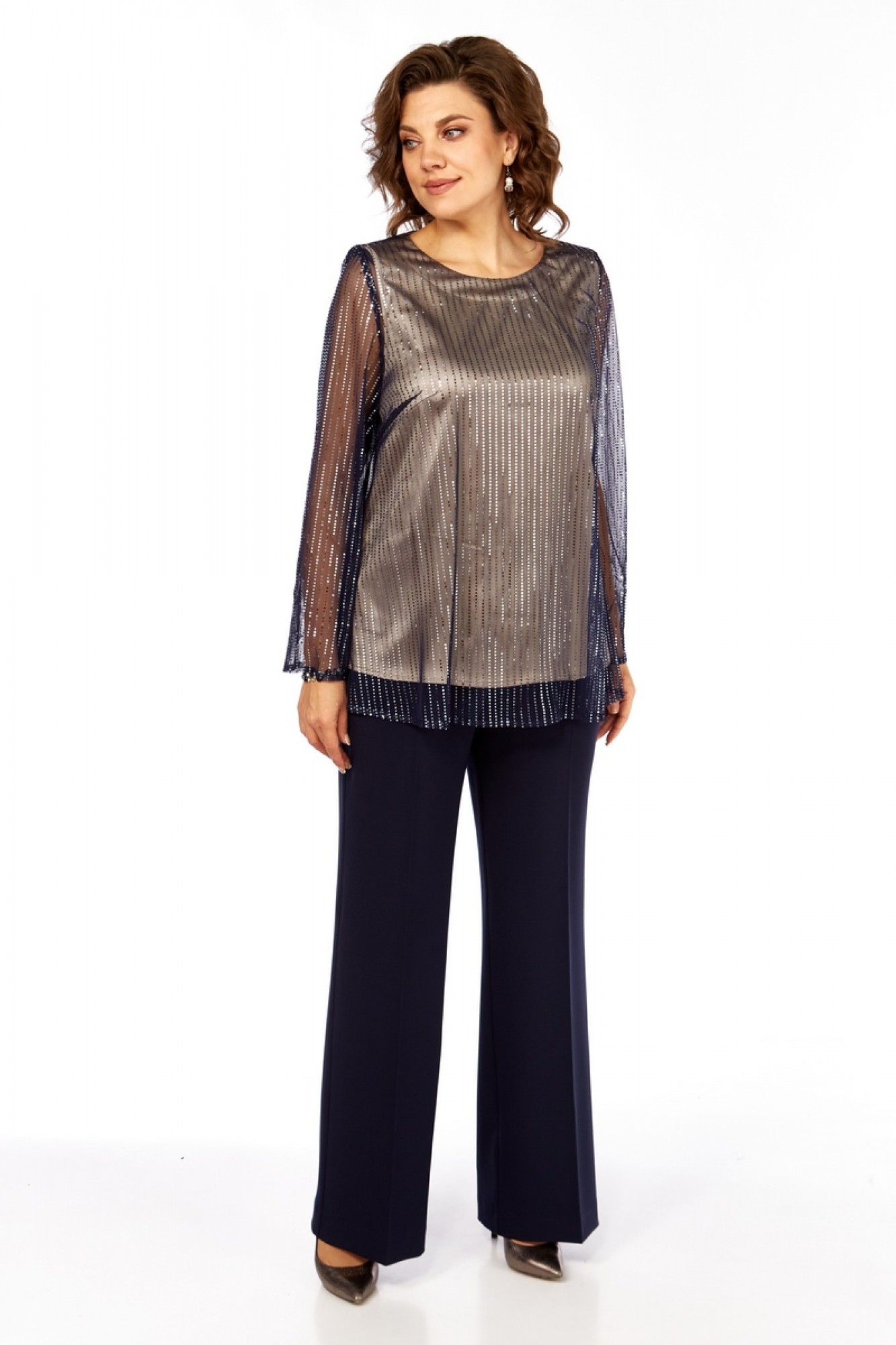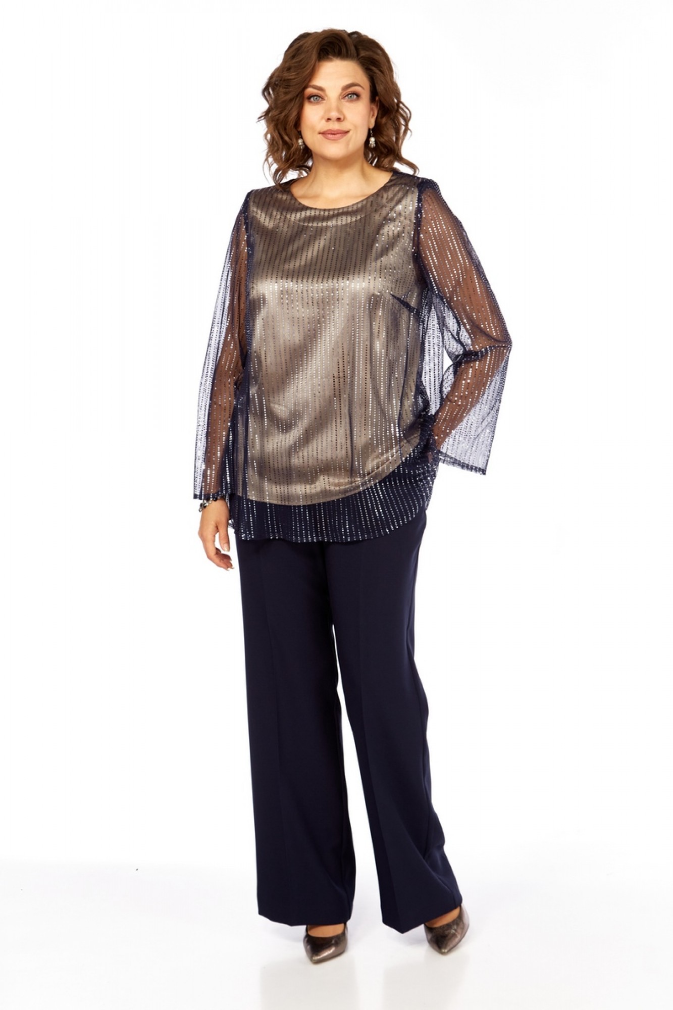 Брючный костюм Милора Стиль 1407 двойка синий