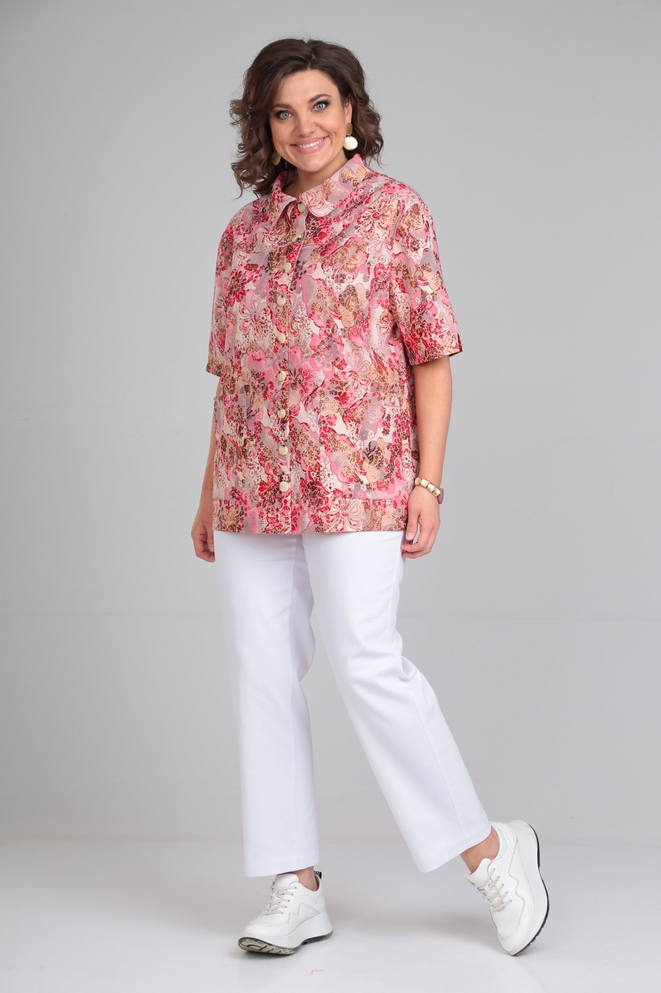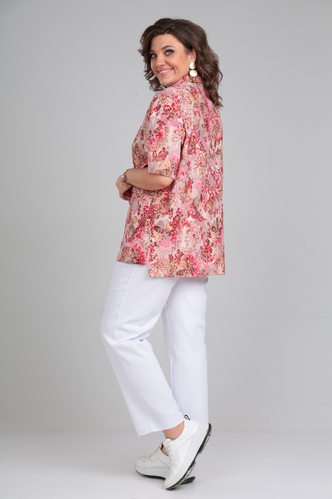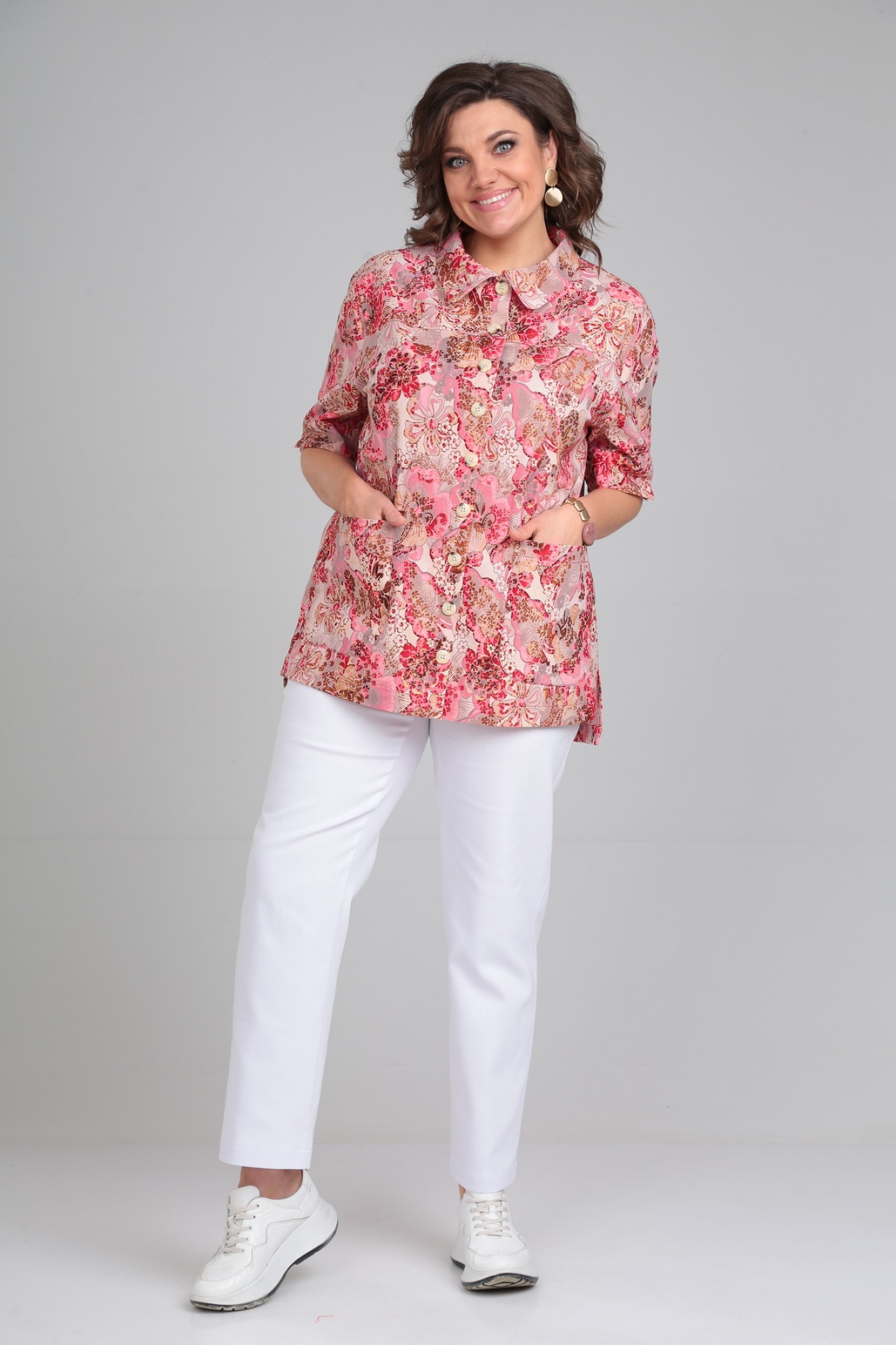 Брючный костюм Мублиз плюс 050 розовый + белый с ID товара 392949